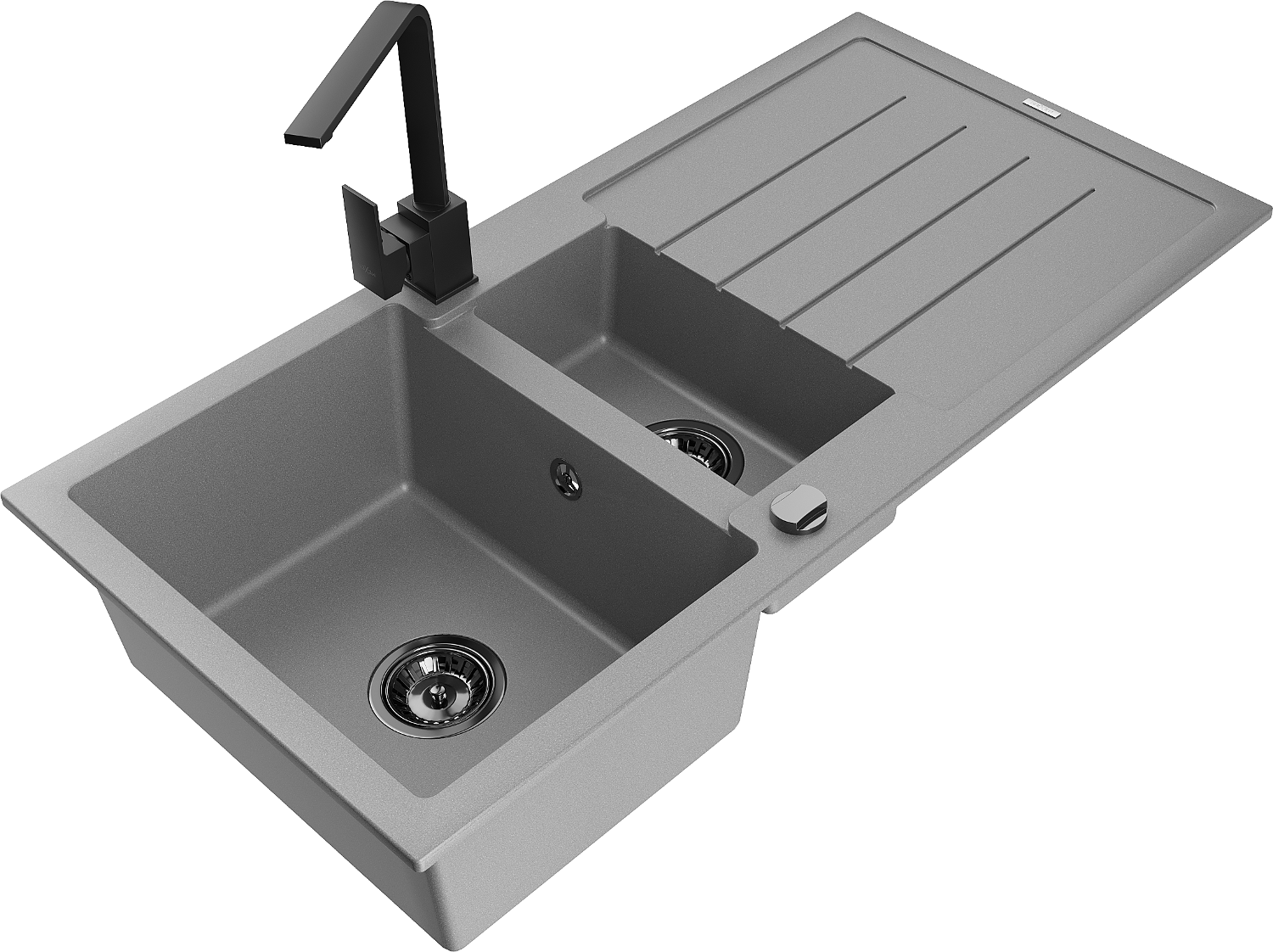 Mexen Andres 1,5 skylių granitinė kriauklė su nuvarvėjimo plokšte ir maišytuvu Rita, pilkas - 6515-71-670300-70-B