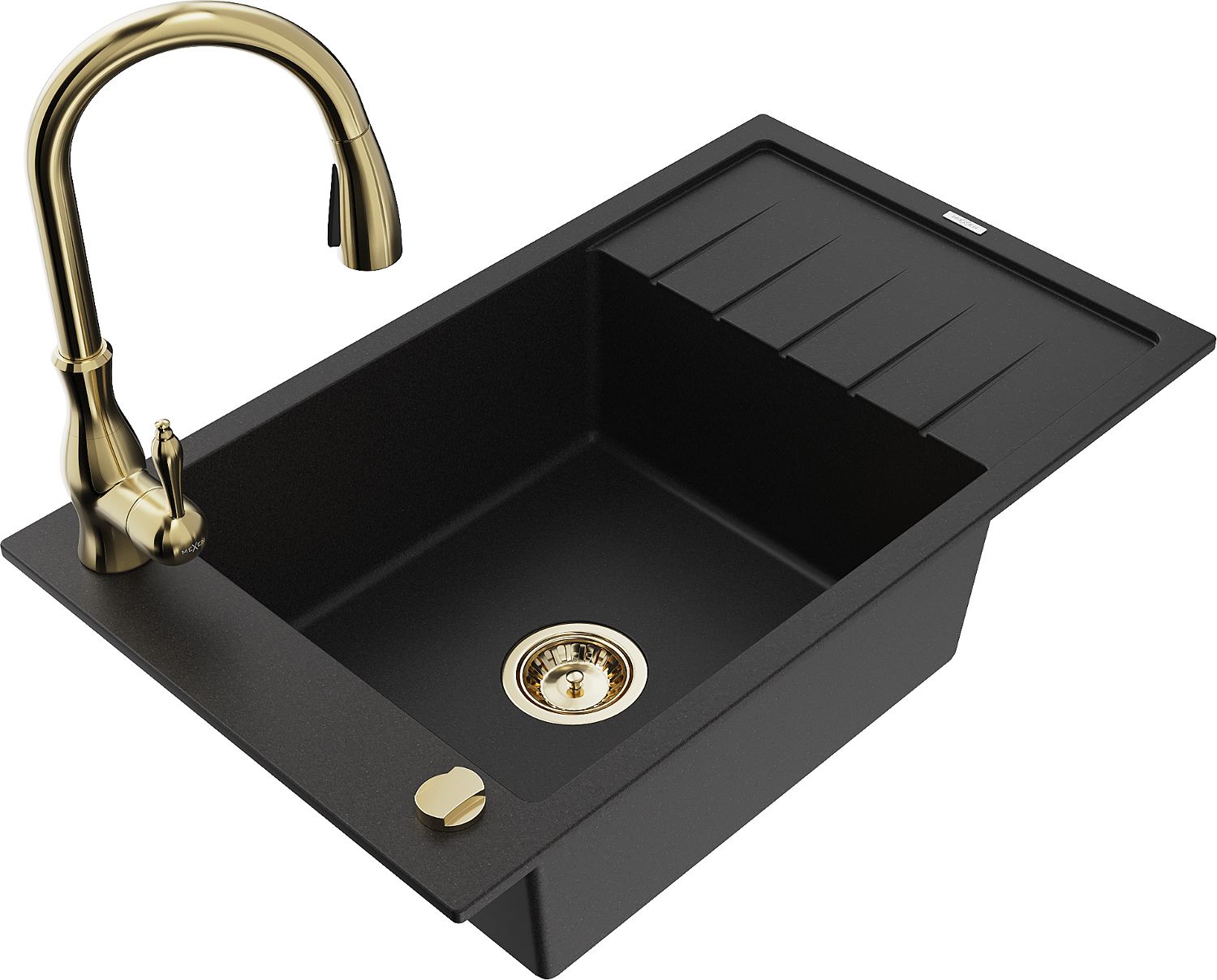Mexen Elias granitinis plautuvė 1-dubens su nusausinimo elementu ir virtuvės maišytuvu Savita, juoda - 6511-77-672601-50