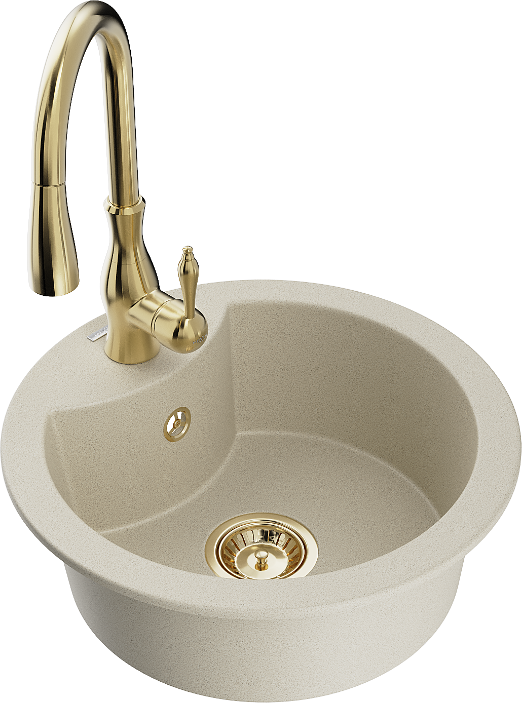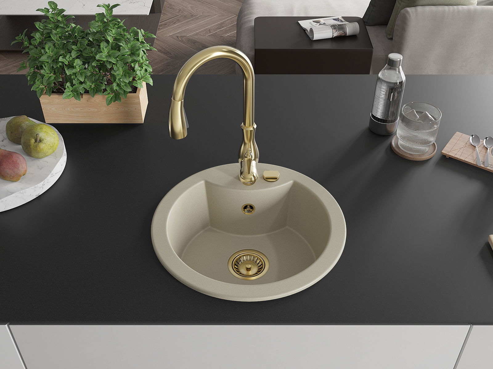 Mexen Diego vienos kameros granitinė virtuvės kriauklė su Savita maišytuvu, smėlio spalvos - 6512-69-672601-50