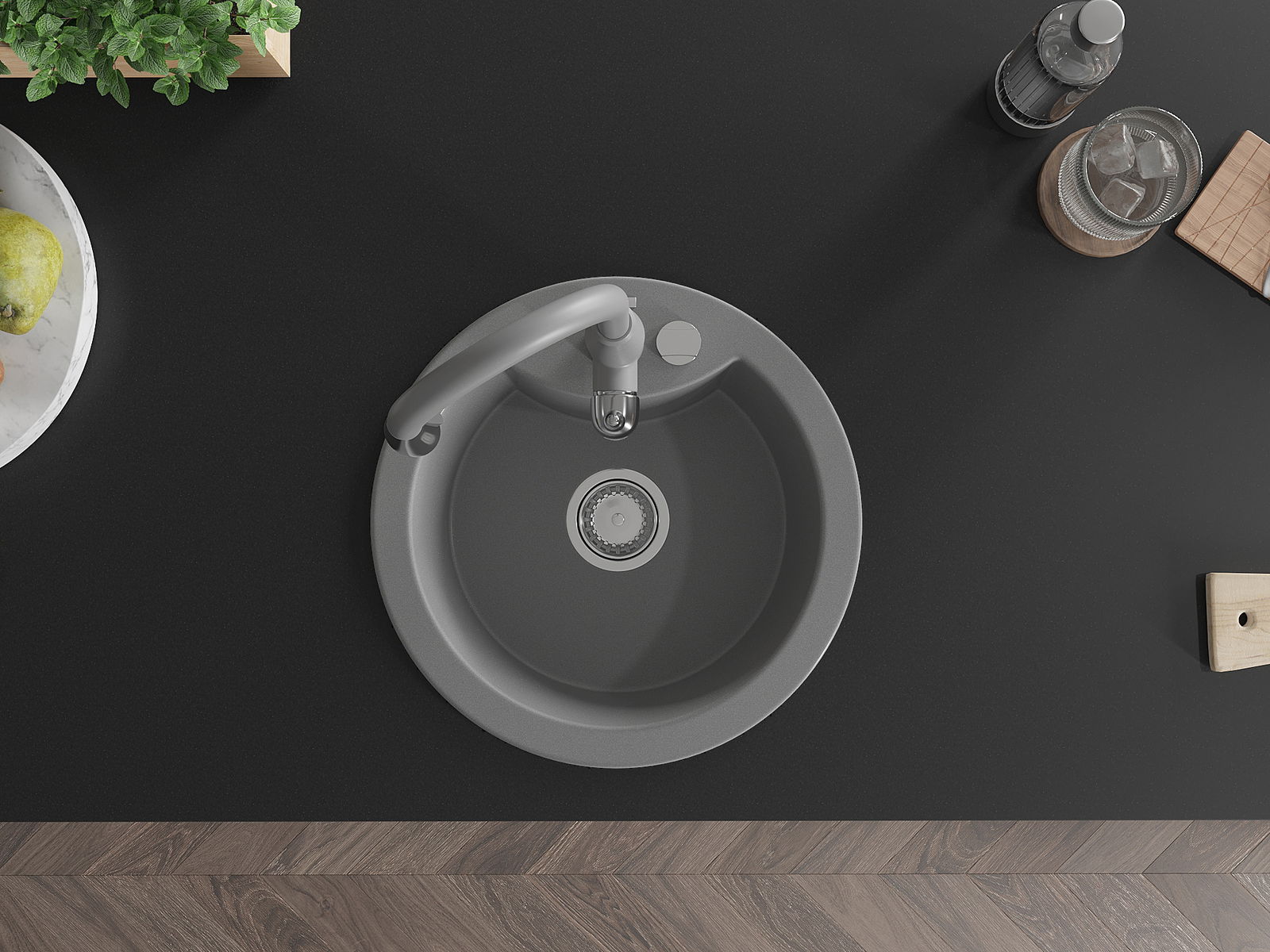 Mexen Diego vienos dubens granitinė virtuvės plautuvė su maišytuvu Savita, pilka - 6512-71-672601-71