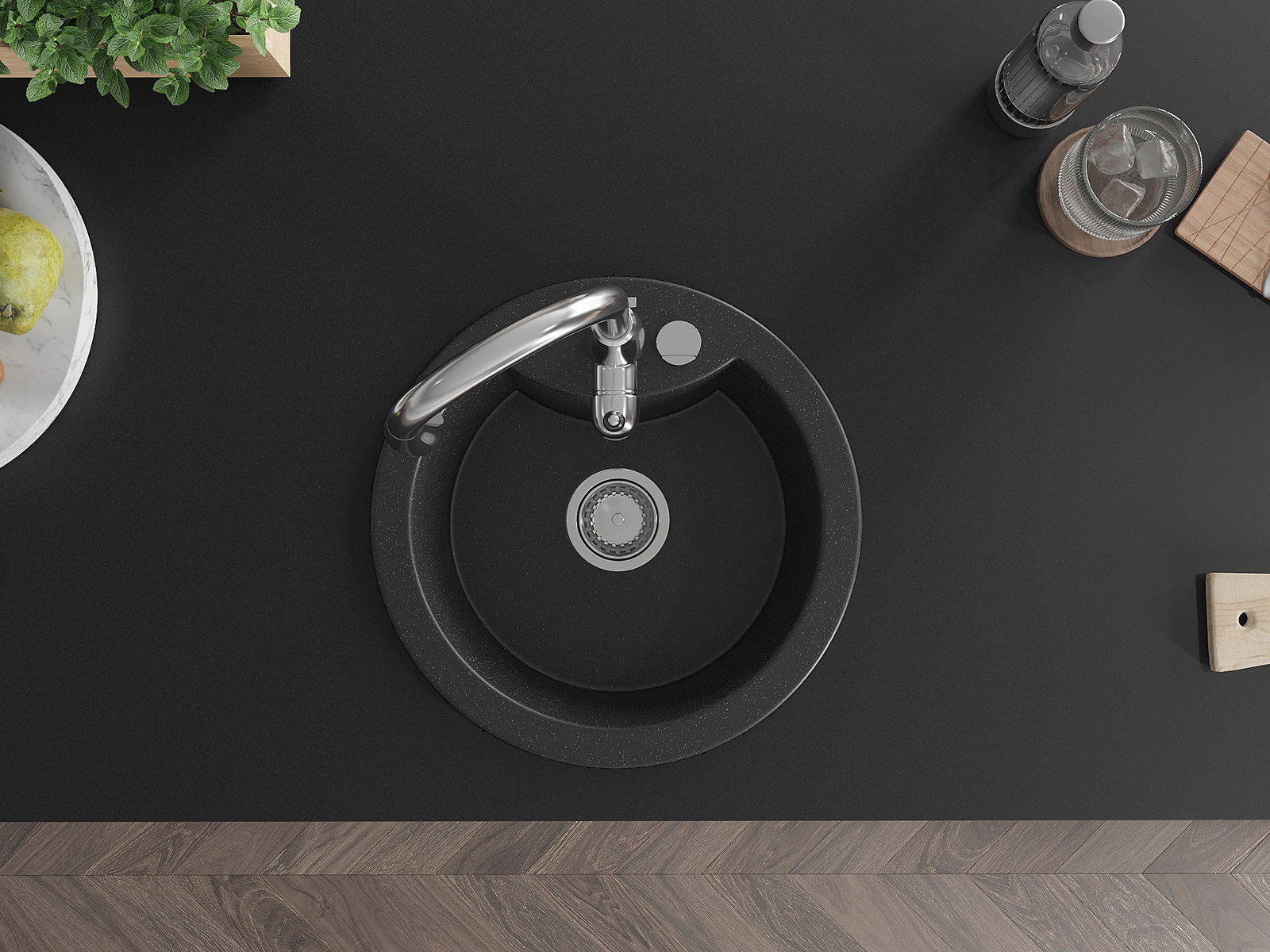 Mexen Diego granitinė virtuvės kriauklė su maišytuvu Savita, juoda/sidabrinė metalinė - 6512-73-672601-00