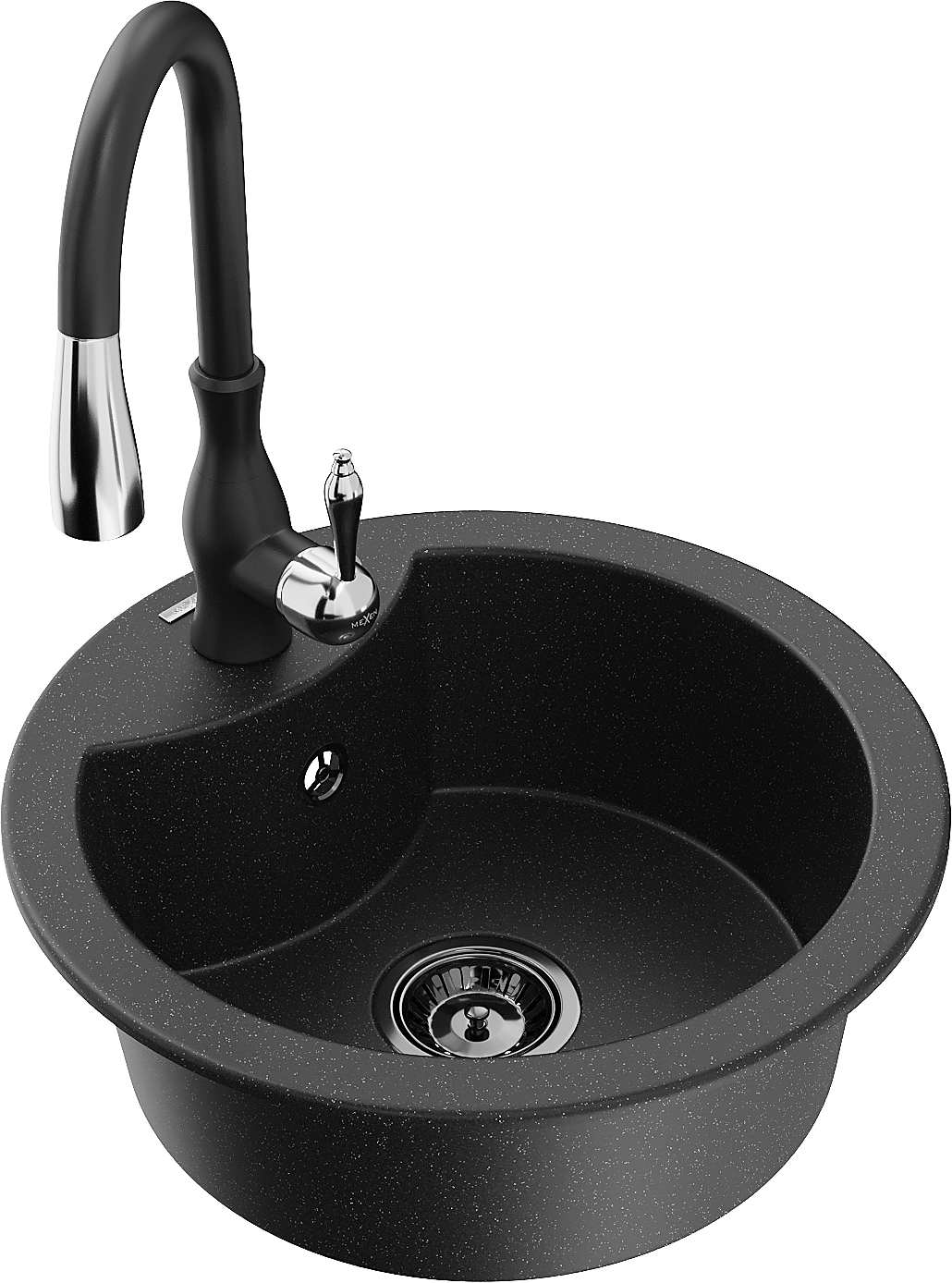 Mexen Diego granitinė vienos kameros kriauklė su Savita virtuviniu maišytuvu, juodas/sidabrinis metalikas - 6512-73-672601-70-B