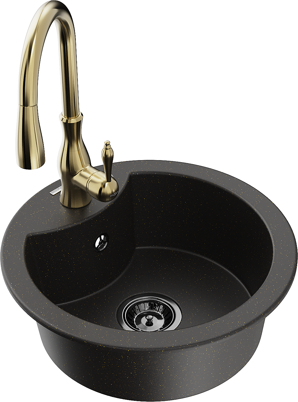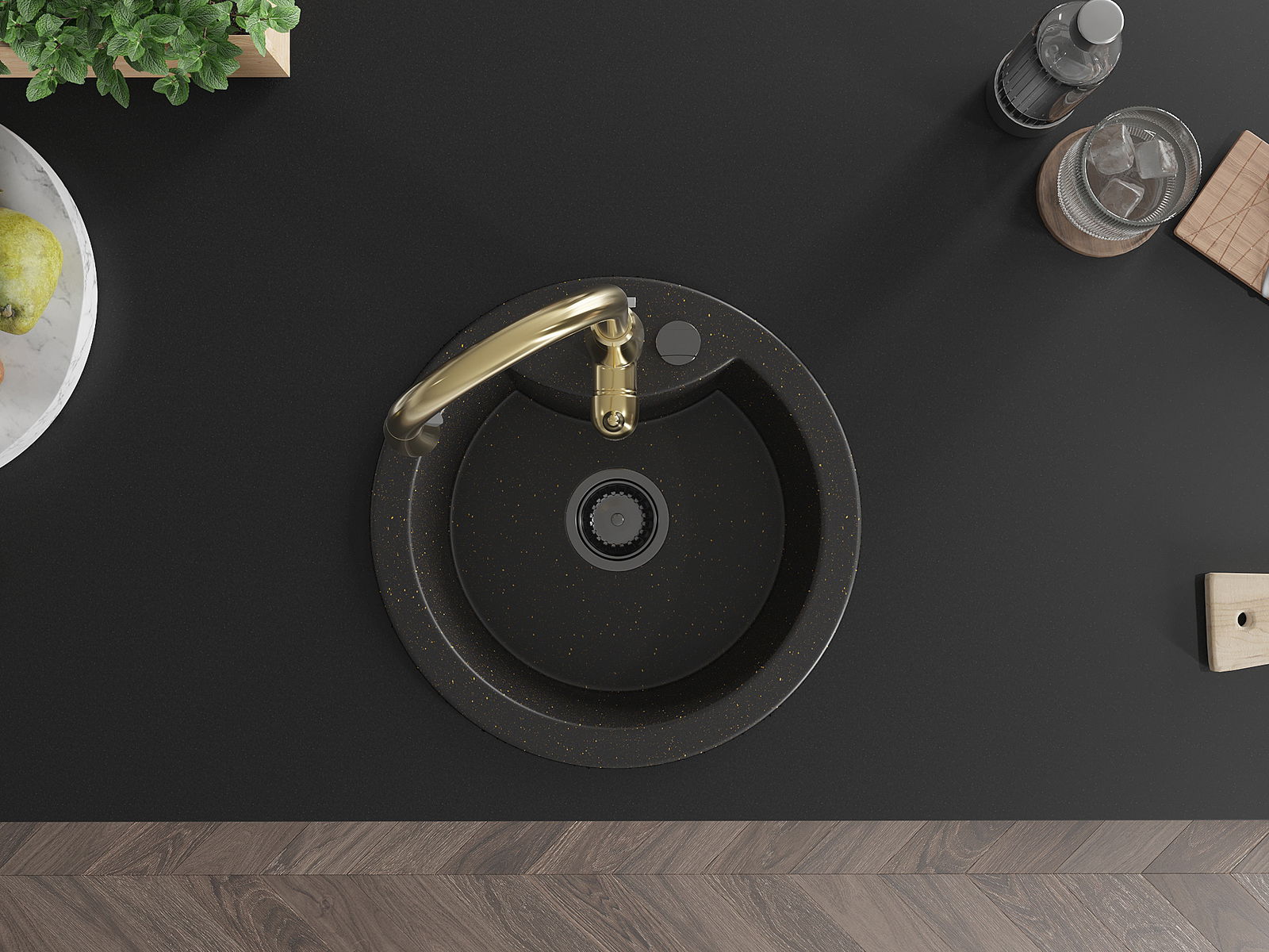 Mexen Diego vienos dalies granitinė kriauklė su virtuviniu maišytuvu Savita, juoda/auksinis metalikas - 6512-75-672601-50-B