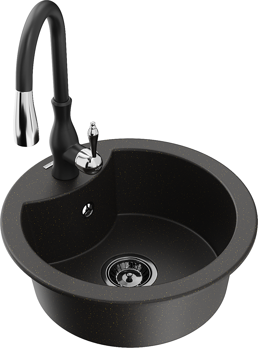 Mexen Diego vienos sekcijos granito plautuvė su virtuviniu čiaupu Savita, juoda/auksinis metalikas - 6512-75-672601-70-B