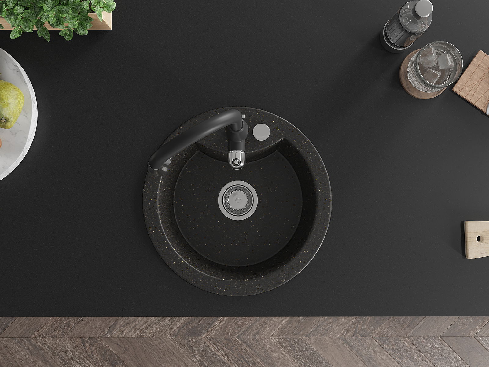 Kriauklės paviršius yra atsparūs dėmėms ir spalvos pasikeitimui, dėl kurio lengva valyti ir ilgą laiką išlaikyti savo spalvą. Estetinis ir praktiškai papildantis kiekvieną virtuvę.