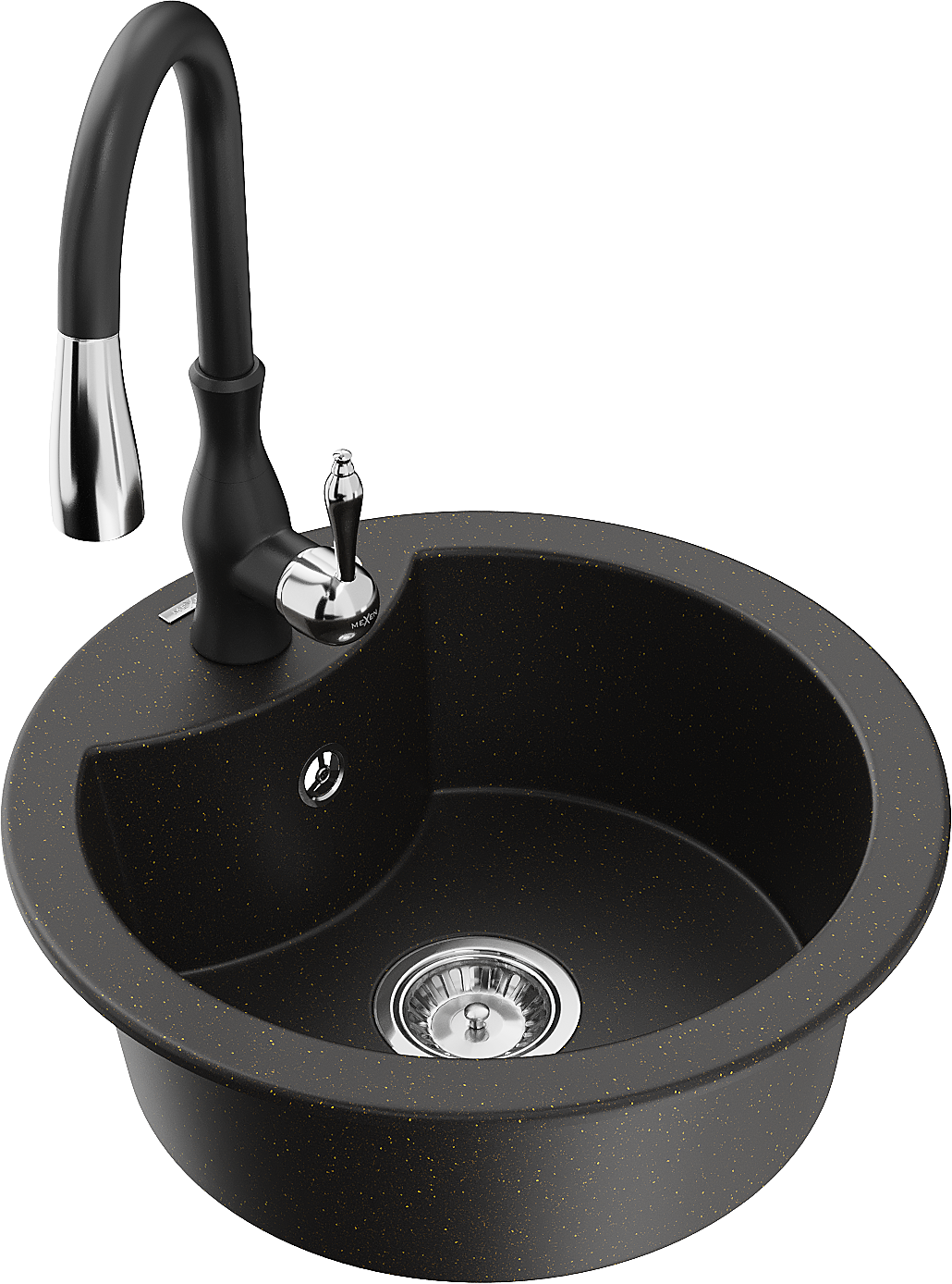 Mexen Diego vienos kameros granito plautuvė su virtuviniu maišytuvu Savita, juoda/auksinė metalika - 6512-75-672601-70
