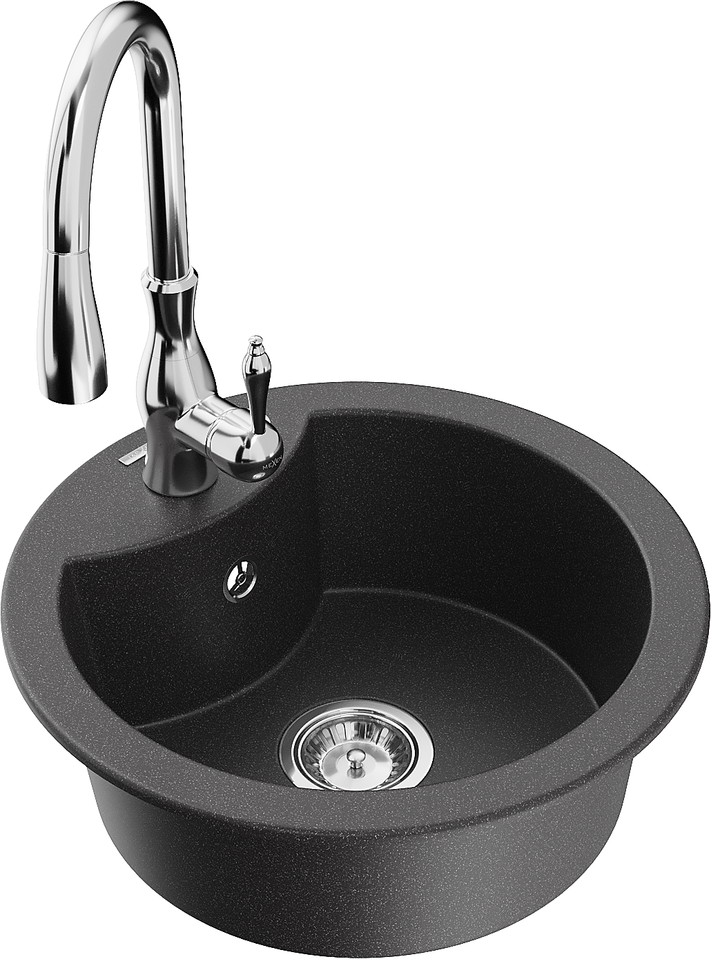 Mexen Diego granito plautuvė vienos kameros su virtuviniu maišytuvu Savita, juodos spalvos su dėmelėmis - 6512-76-672601-00