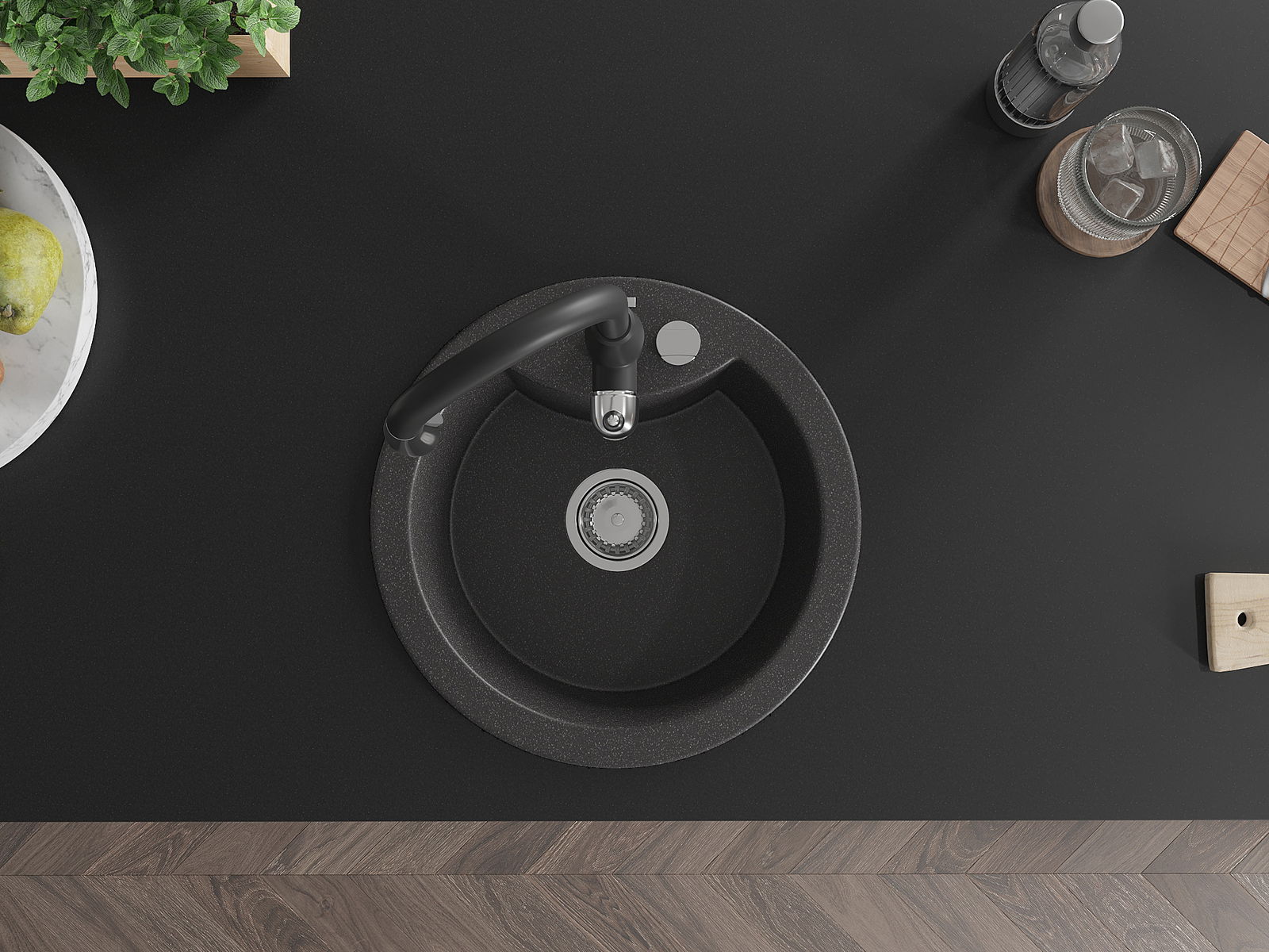 Mexen Diego granito virtuvės kriauklė 1 skyrelio su Savita virtuviniu maišytuvu, juoda dėmėta - 6512-76-672601-70