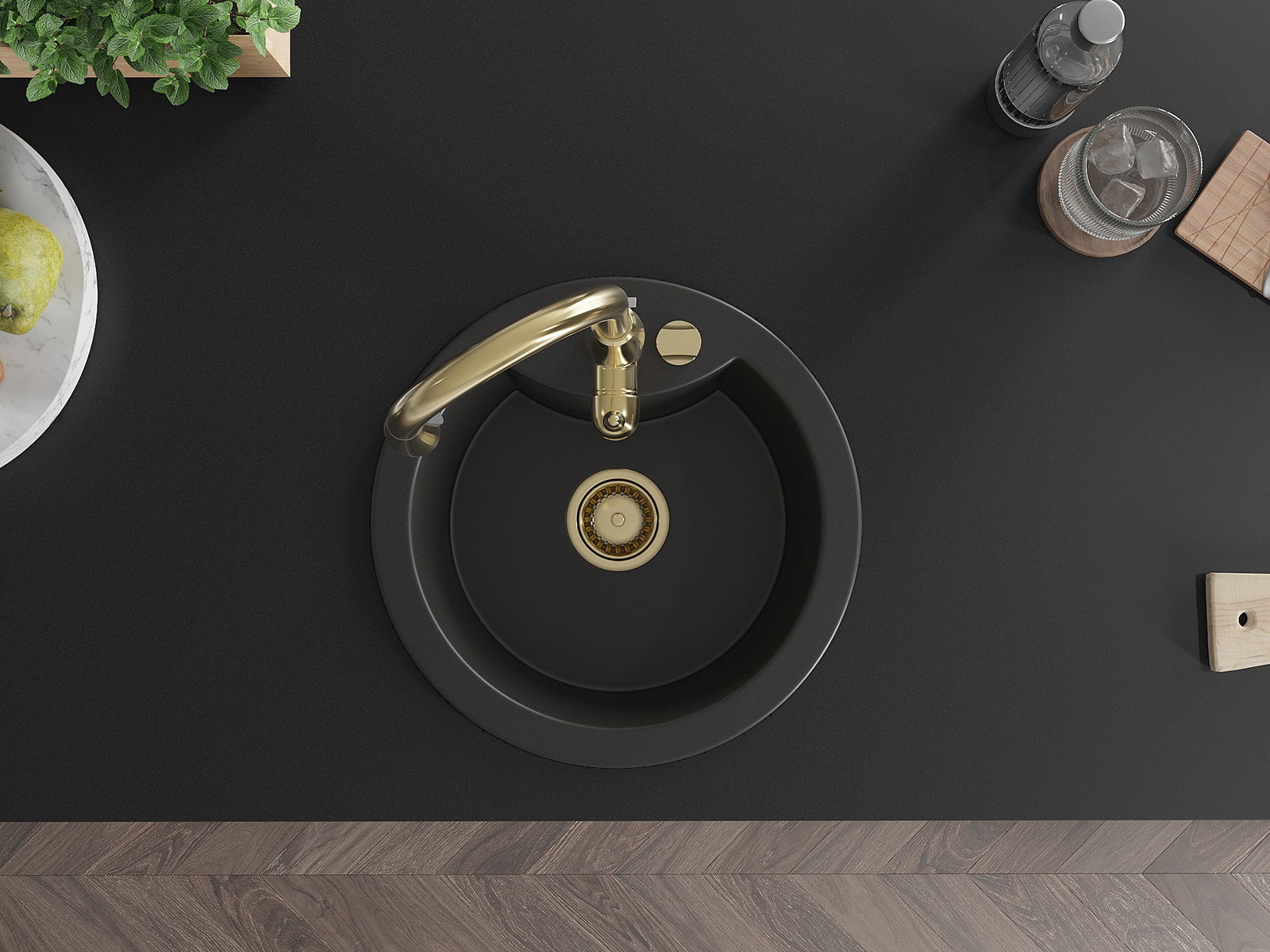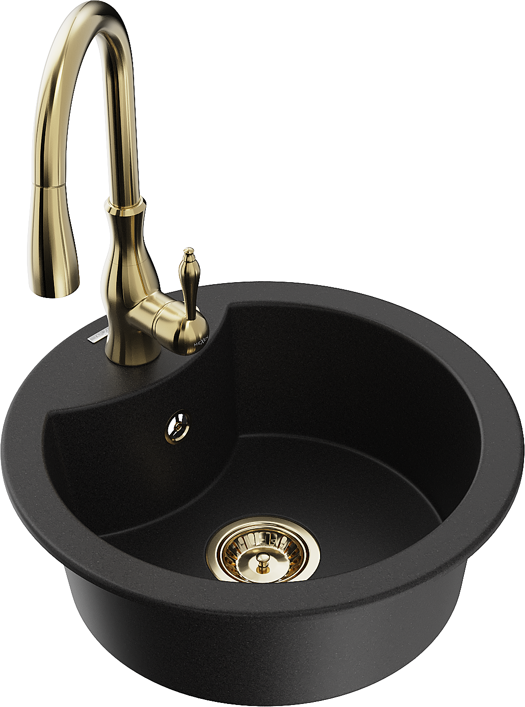 Mexen Diego granitinė vienos kameros plautuvė su virtuviniu maišytuvu Savita, juoda - 6512-77-672601-50