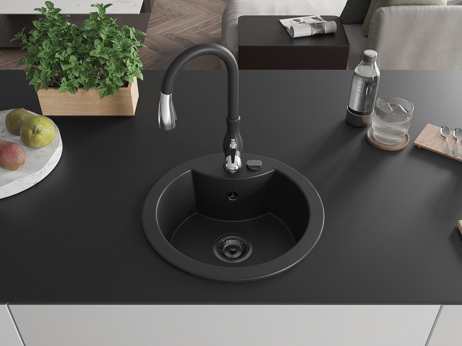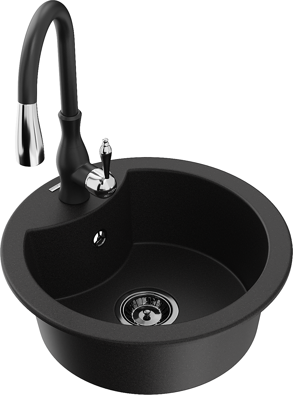Mexen Diego vienos kameros granitinė plautuvė su Savita virtuviniu maišytuvu, juoda - 6512-77-672601-70-B