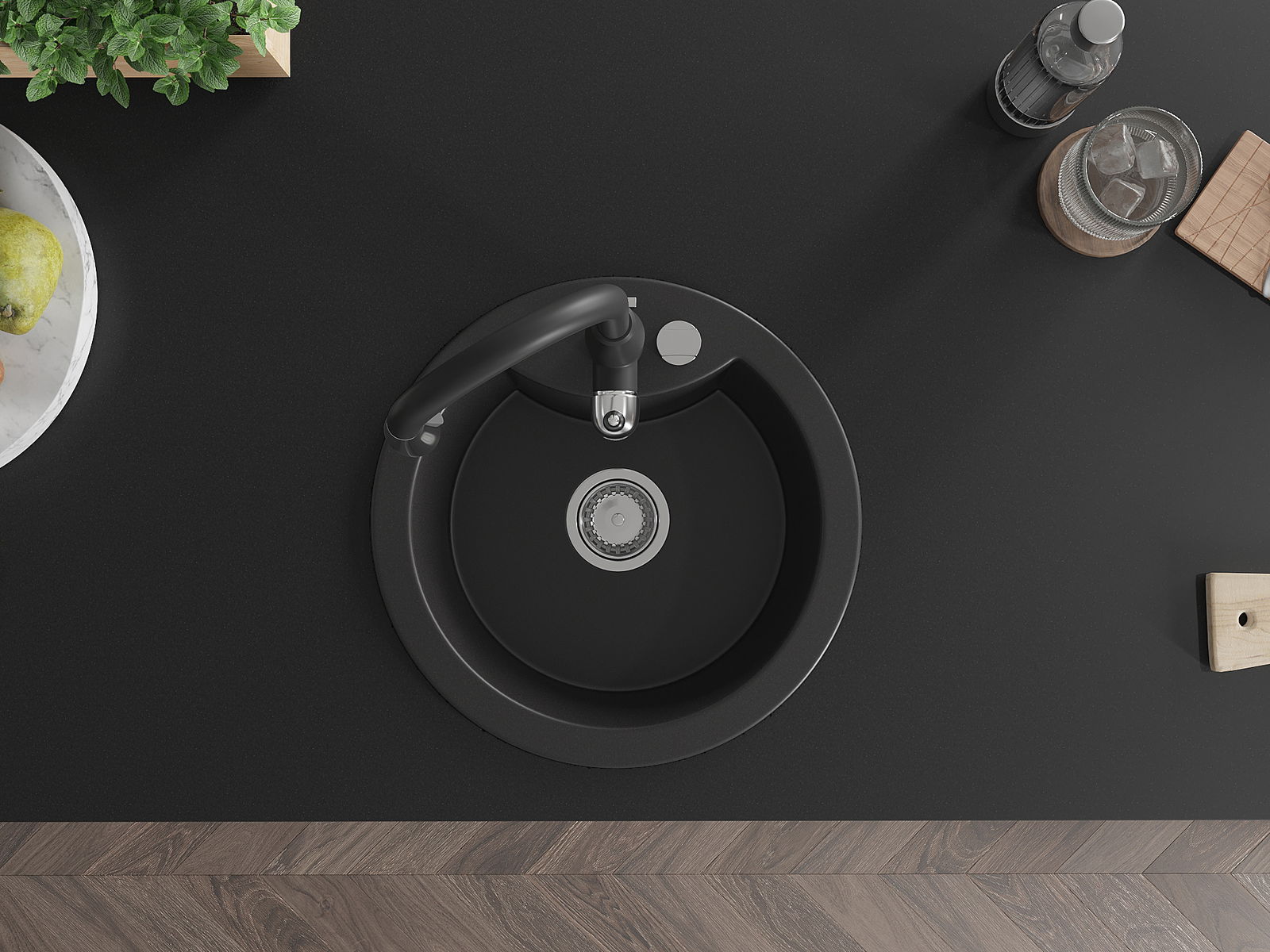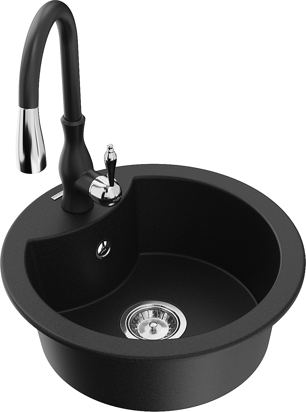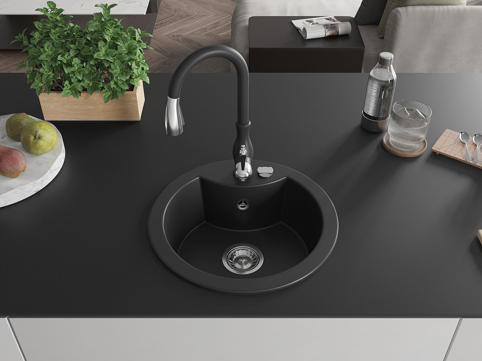 Mexen Diego vienos dubens granitinė plautuvė su Savita virtuviniu maišytuvu, juoda - 6512-77-672601-70