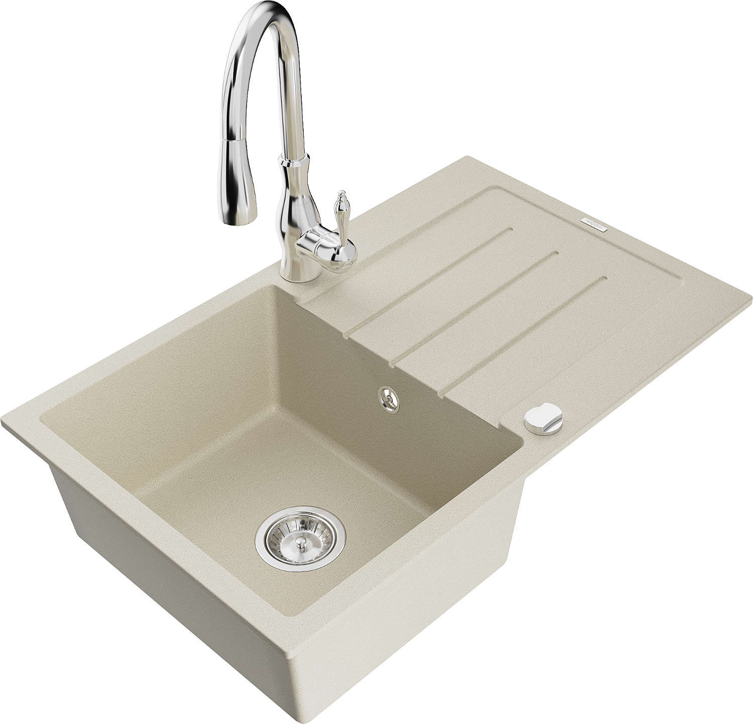 Mexen Bruno granito plautuvė su viena kamera ir nutekėjimu, su Savita virtuviniu maišytuvu, smėlio spalvos - 6513-69-672601-00