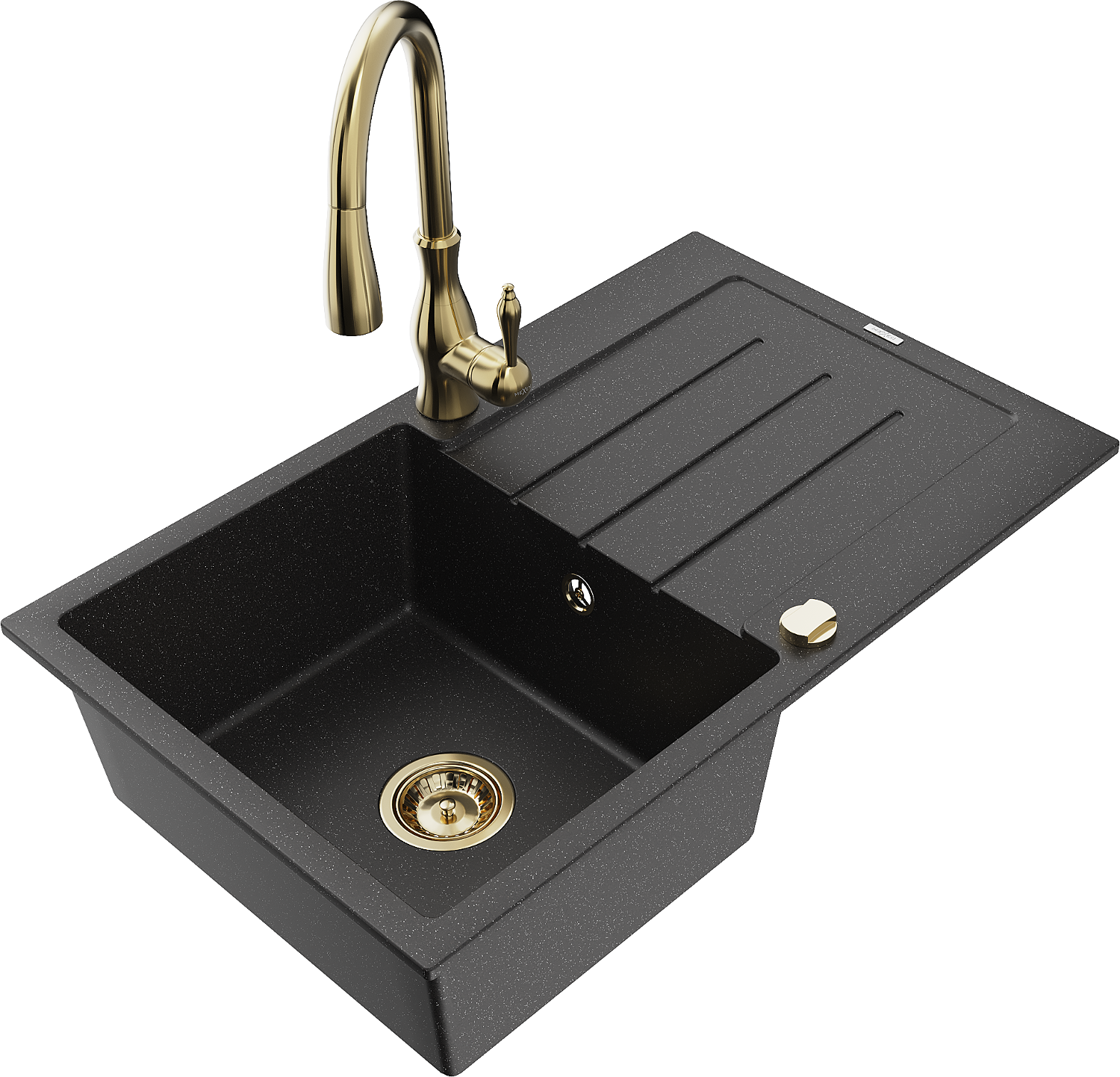Mexen Bruno granitinis plautuvė su viena kamera ir nubėgimo skyriumi, virtuvinis maišytuvas Savita, juodas/sidabrinis metalikas?