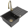 Mexen Bruno 1-dalių granito kriauklė su nusausinimo lentyna ir virtuvės maišytuvu Savita, juoda/auksinė metalo spalva - 6513-75?