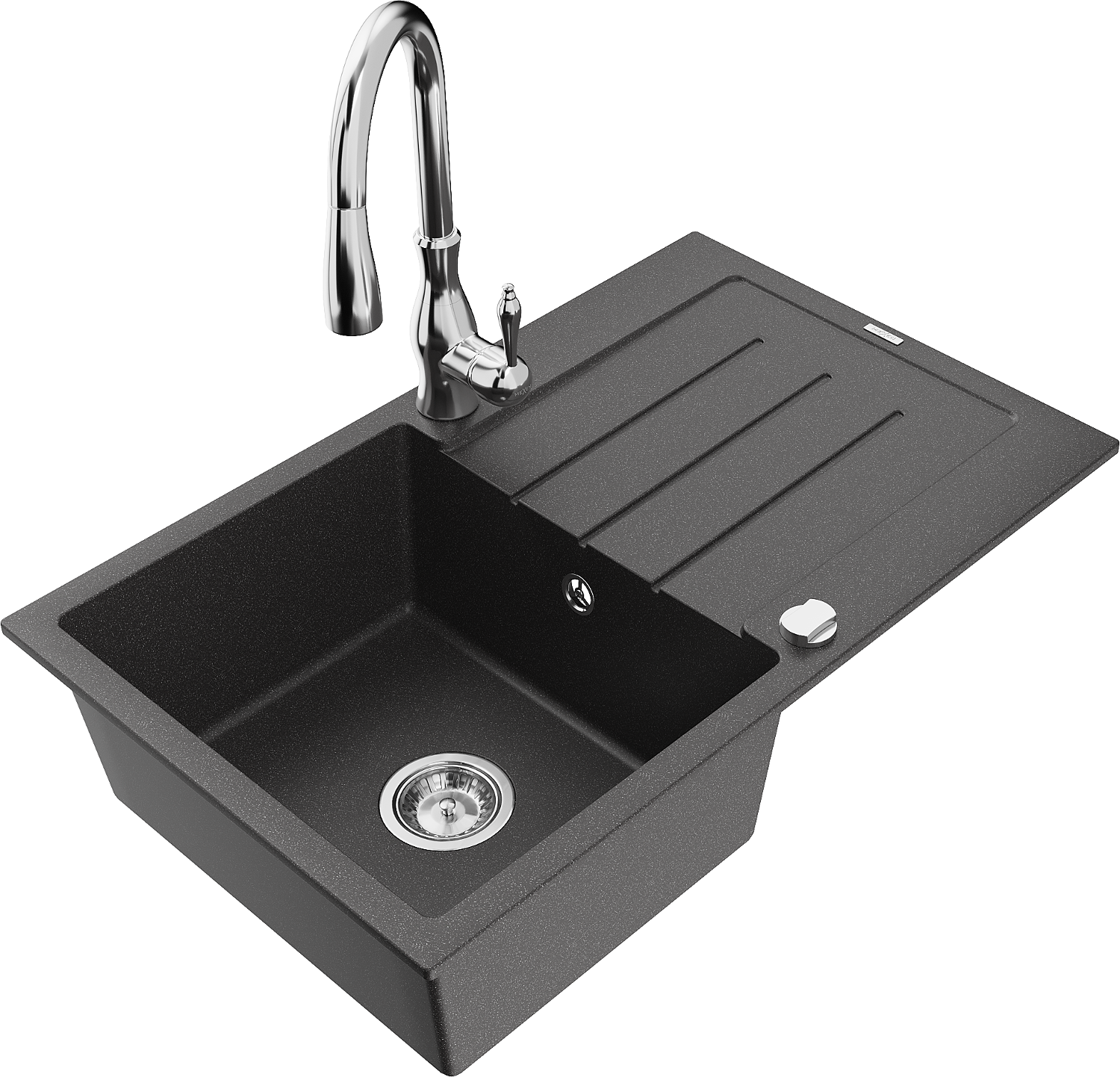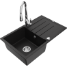 Mexen Bruno granitinė vienos kameros plautuvė su drenažu ir virtuviniu maišytuvu Savita, juoda dėmėta - 6513-76-672601-00