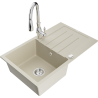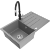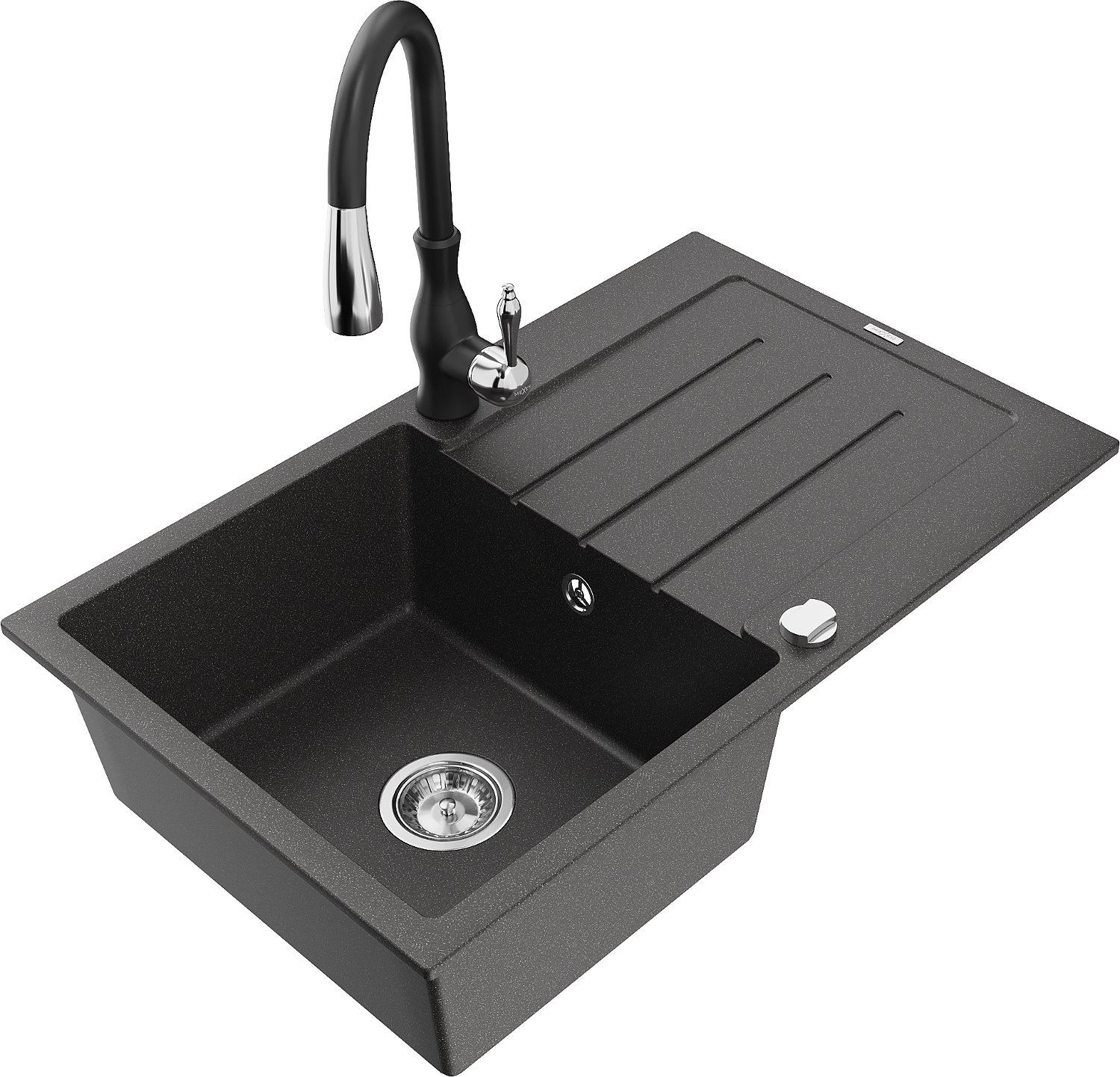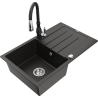 Mexen Bruno granitinė vieno dubenio kriauklė su drenažu ir virtuviniu maišytuvu Savita, juoda taškuota - 6513-76-672601-70