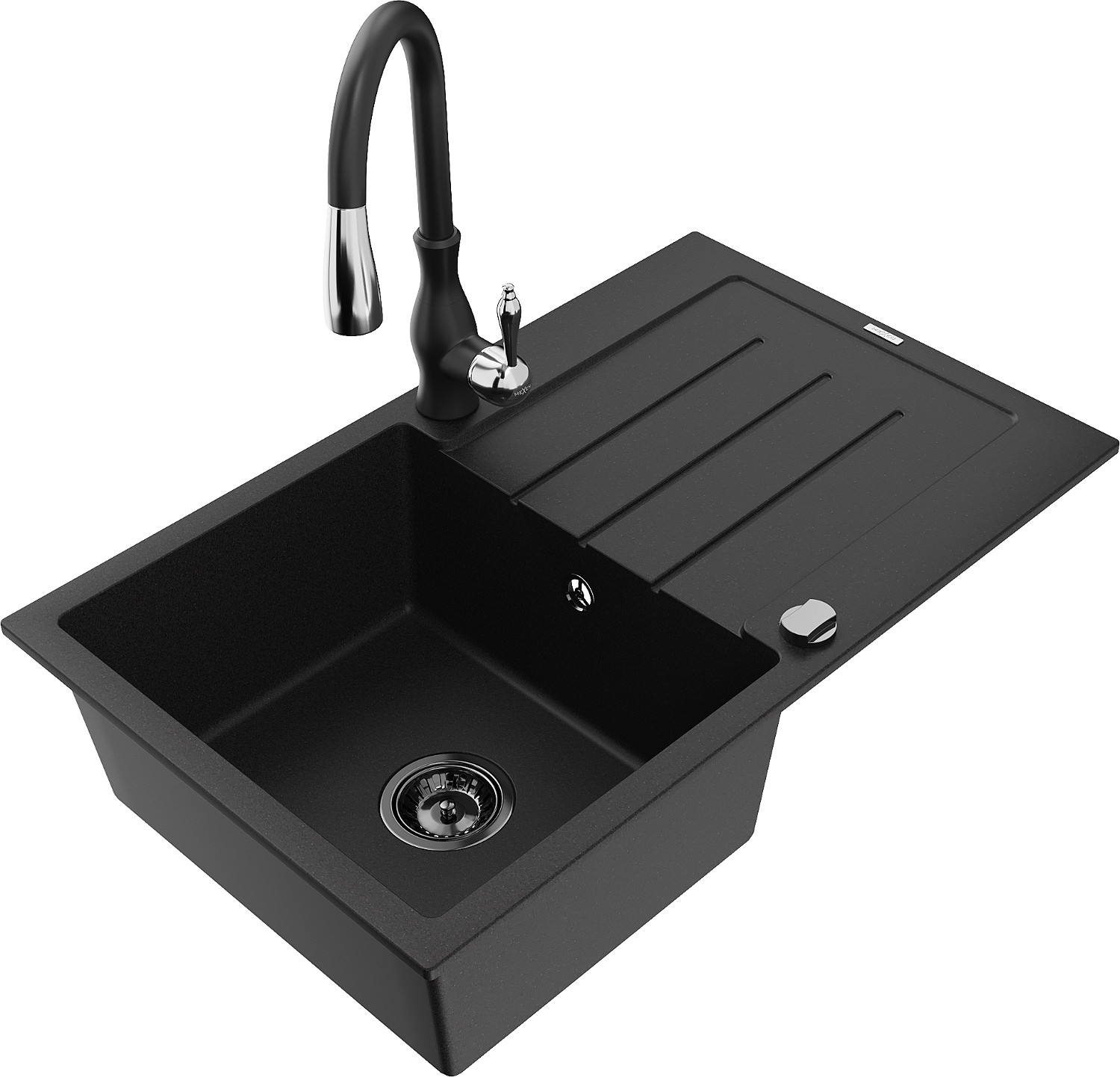 Mexen Bruno granito virtuvės kriauklė, 1 skyrelio, su nutekamu ir virtuviniu maišytuvu Savita, juodas - 6513-77-672601-70-B