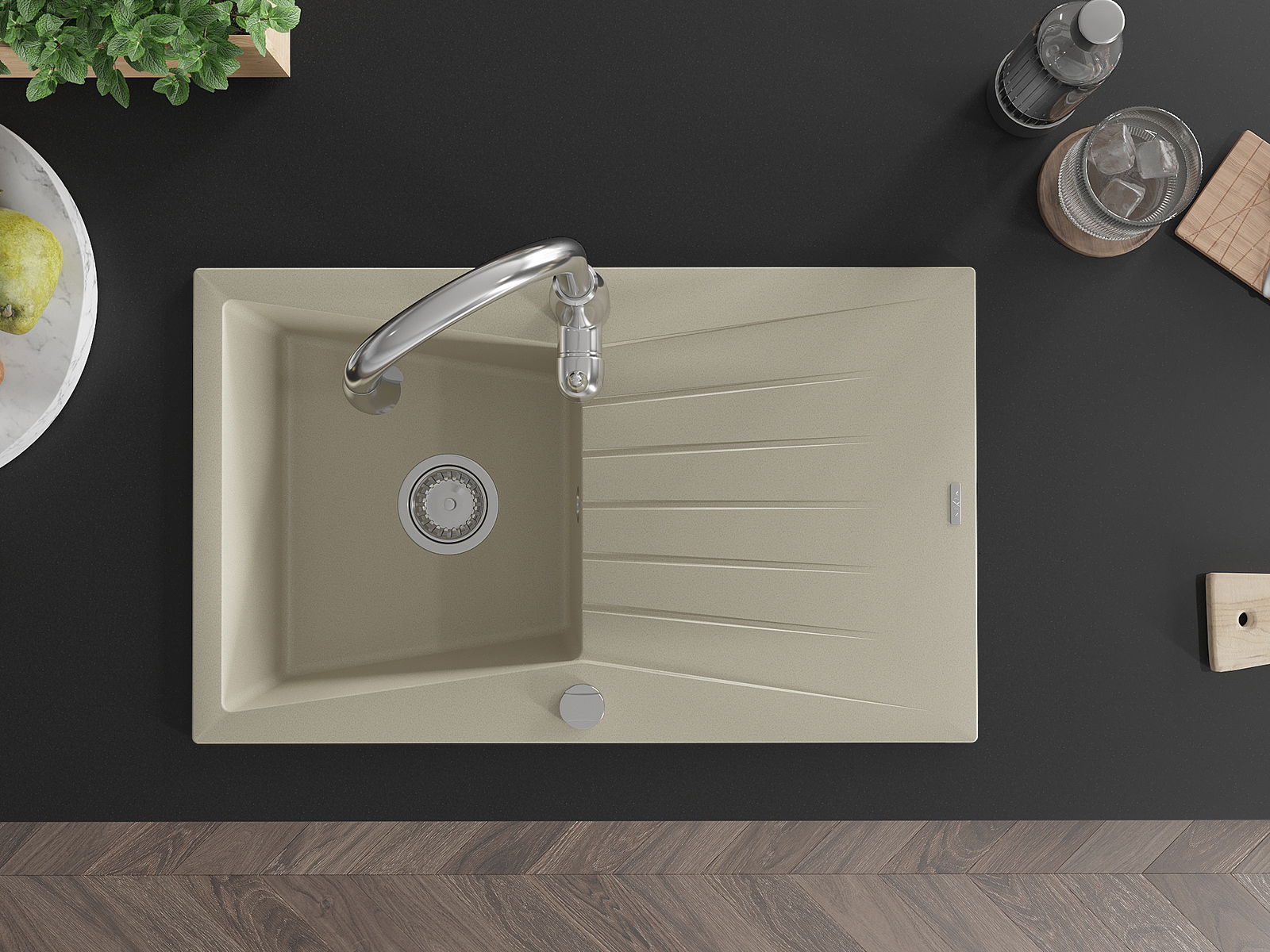 Mexen Cesar granito plautuvė 1 skyrius su nutekamu ir virtuvės maišytuvu Savita, smėlio spalvos - 6514-69-672601-00