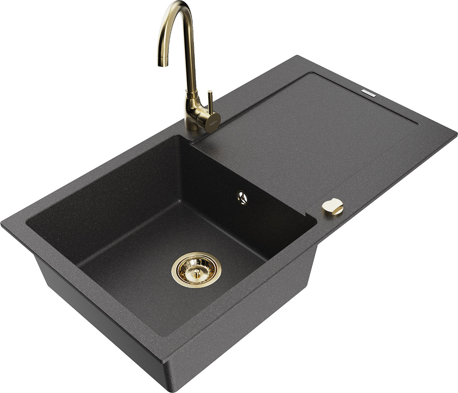 Mexen Leo granitinis virtuvės plautuvas 1 kamerų su lašintuvu ir virtuviniu maišytuvu Telma, juodas dėmėtas - 6501-76-670200-50