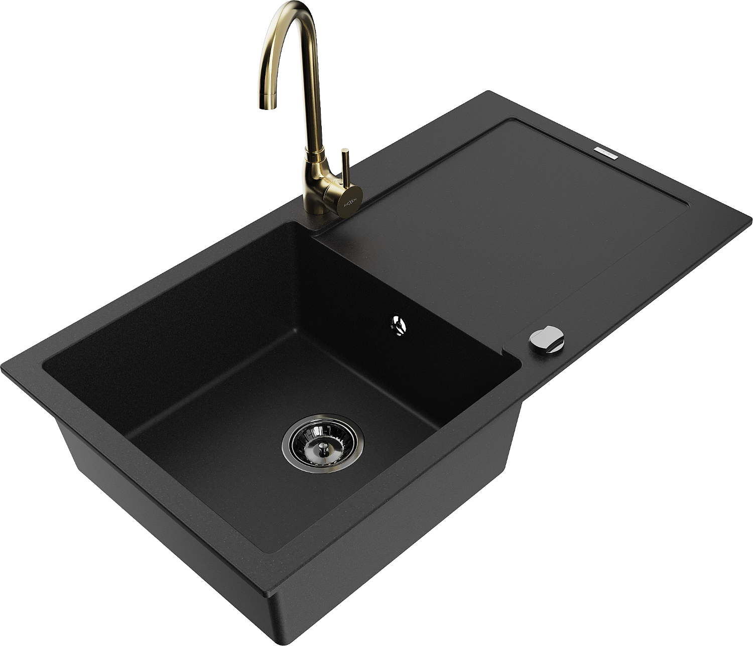 Mexen Leo granitinė plautuvė su vienu dubeniu, nusausinimu ir virtuviniu maišytuvu Telma, juoda - 6501-77-670200-50-B