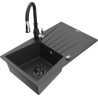 Mexen Cesar granitinė vienos kameros kriauklė su nutekėjimu ir virtuviniu maišytuvu Savita, juoda/sidabrinė