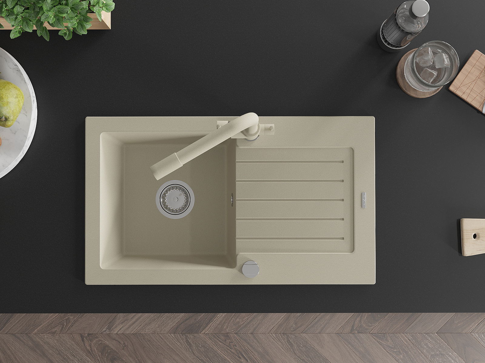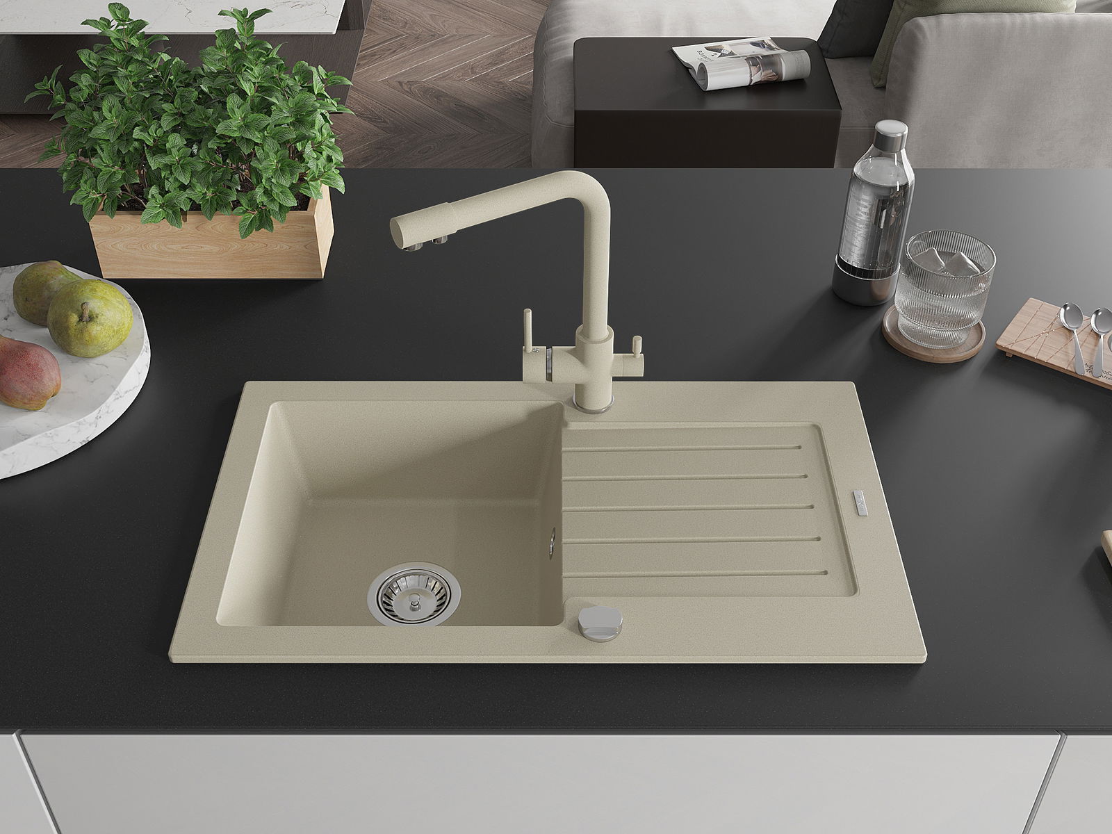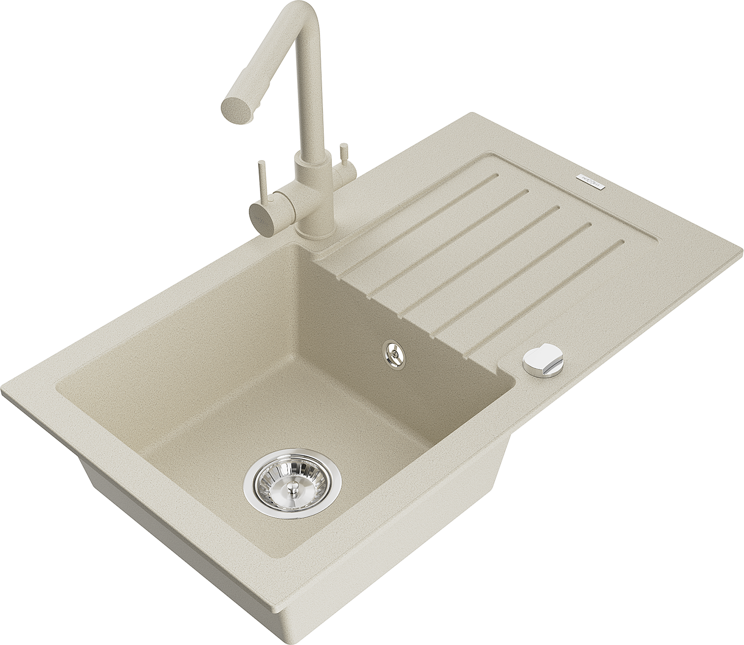 Mexen Pablo granitinė 1 skyrelio plautuvė su nusausinimo zona ir virtuviniu maišytuvu Duero, smėlio spalvos - 6510-69-671600-69