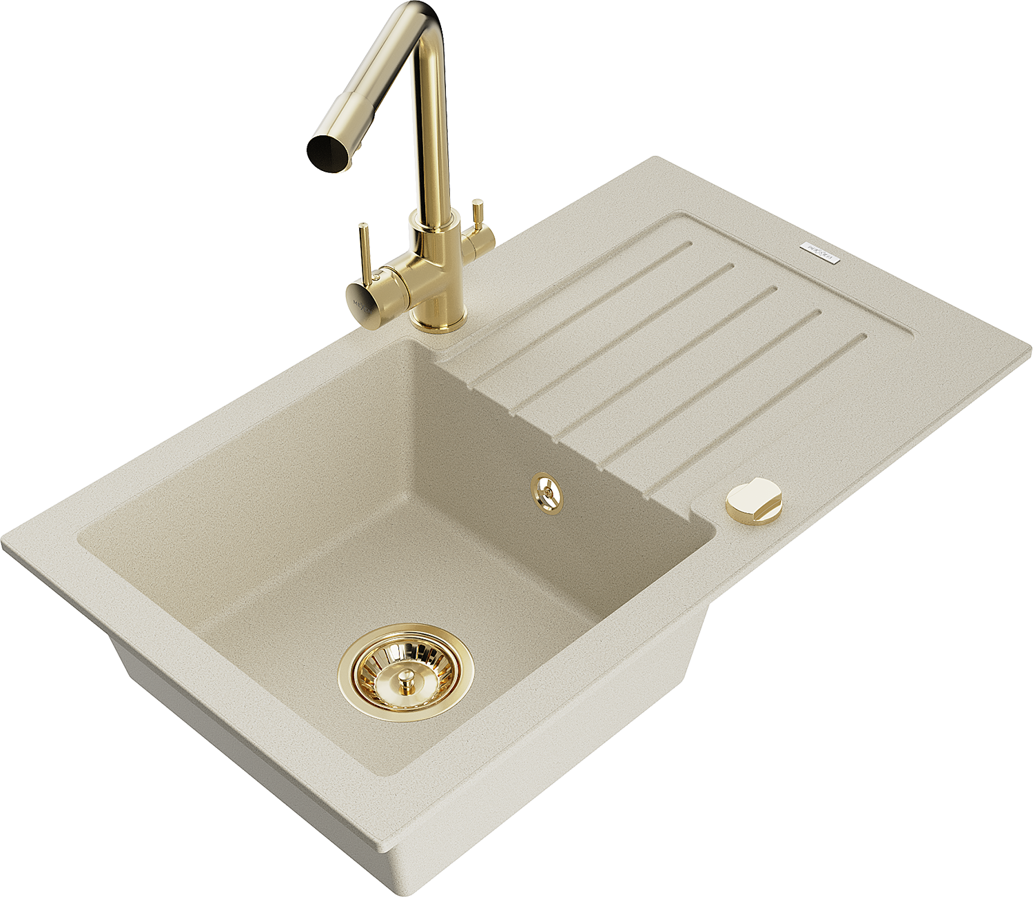 Mexen Pablo vienos kameros granito kriauklė su drenažu ir virtuviniu maišytuvu Duero, smėlio spalvos - 6510-69-671600-50