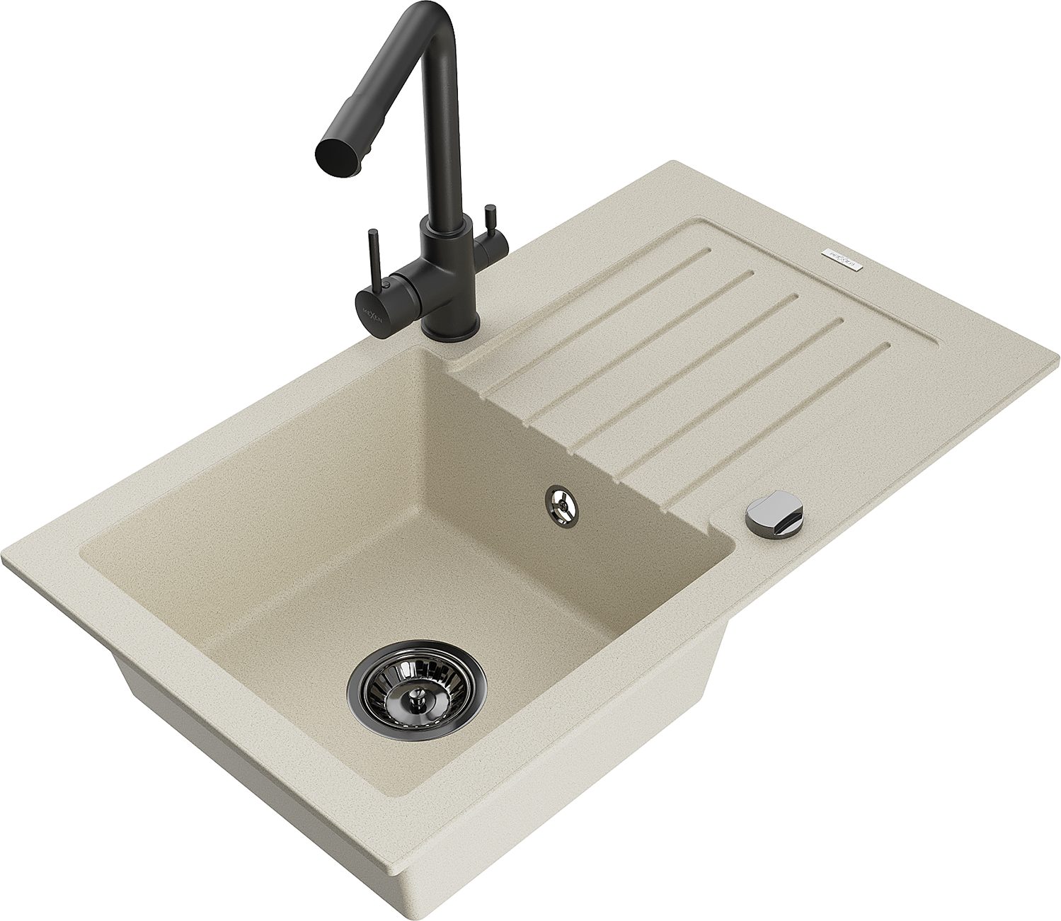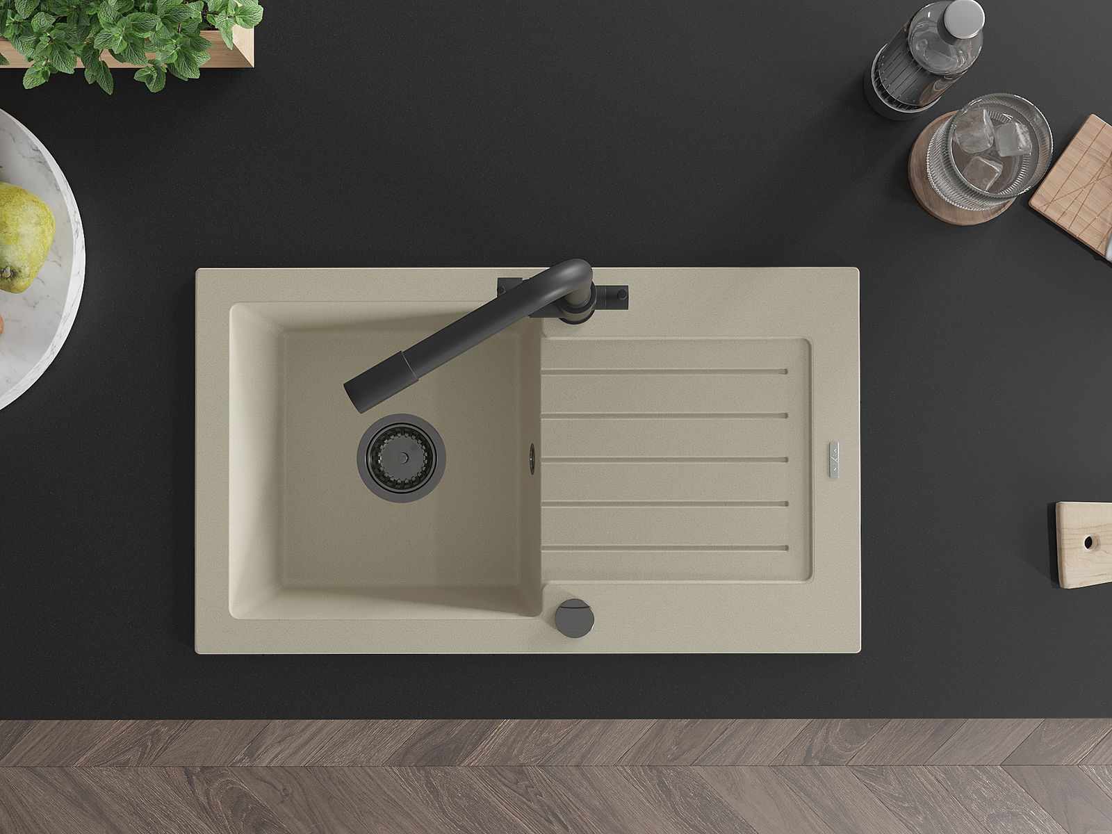 Mexen Pablo granito plautuvė 1-skyrius su nutekamu ir virtuviniu maišytuvu Duero, smėlio spalvos - 6510-69-671600-70