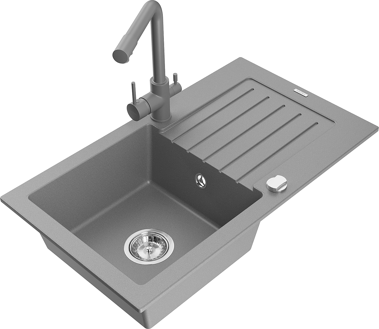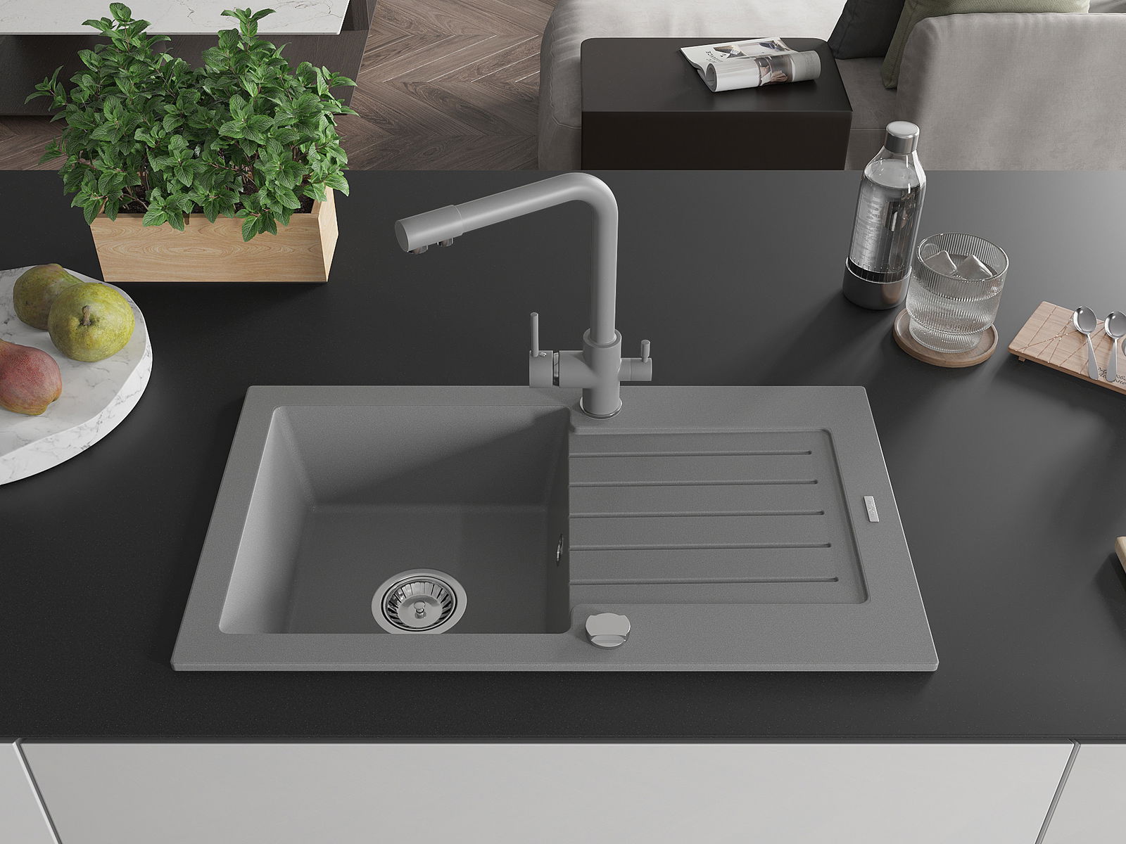 Mexen Pablo 1-jų skylių granito plautuvė su nuvarvėjimo lentyna ir virtuviniu čiaupu Duero, pilka - 6510-71-671600-71
