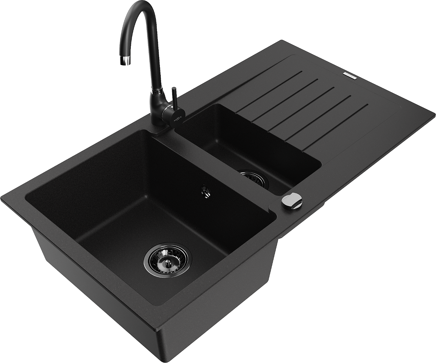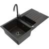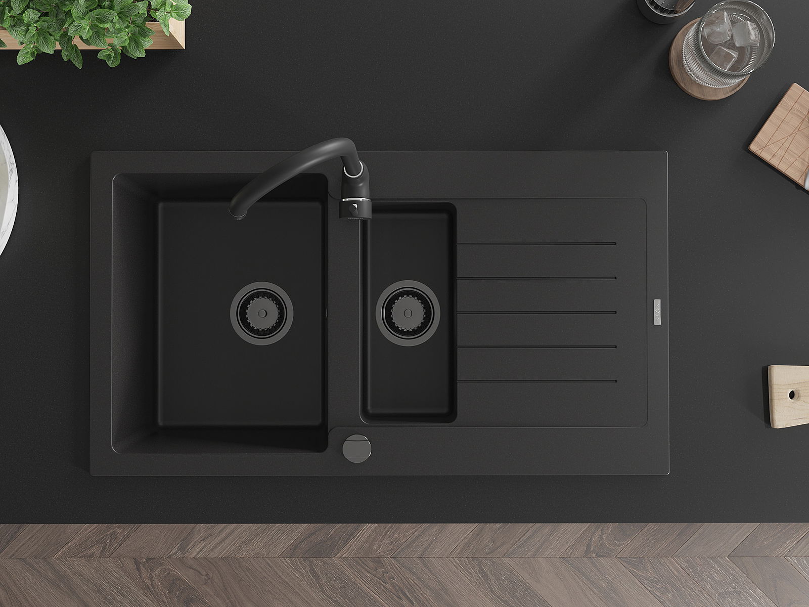 Mexen Matias 1,5 skylių granito kriauklė su nusausintuvu ir Telma virtuviniu maišytuvu, juoda - 6502-77-670200-70-B