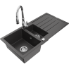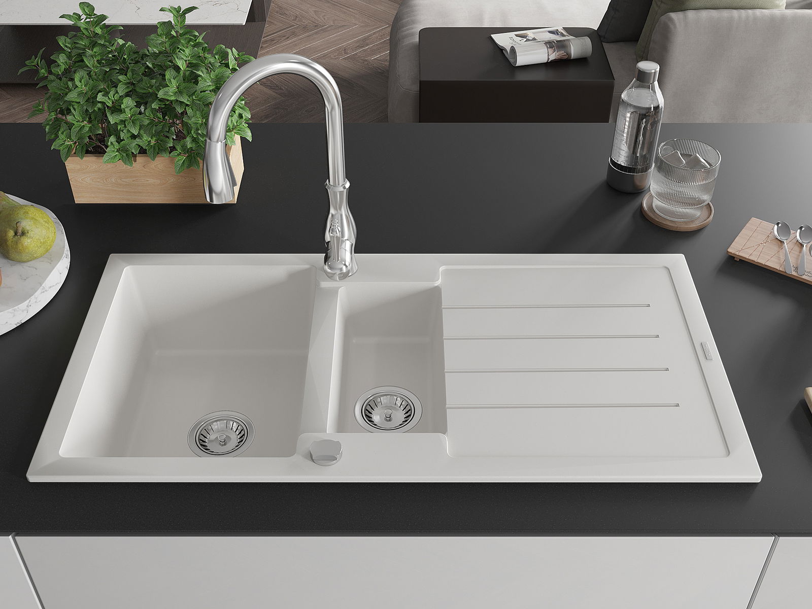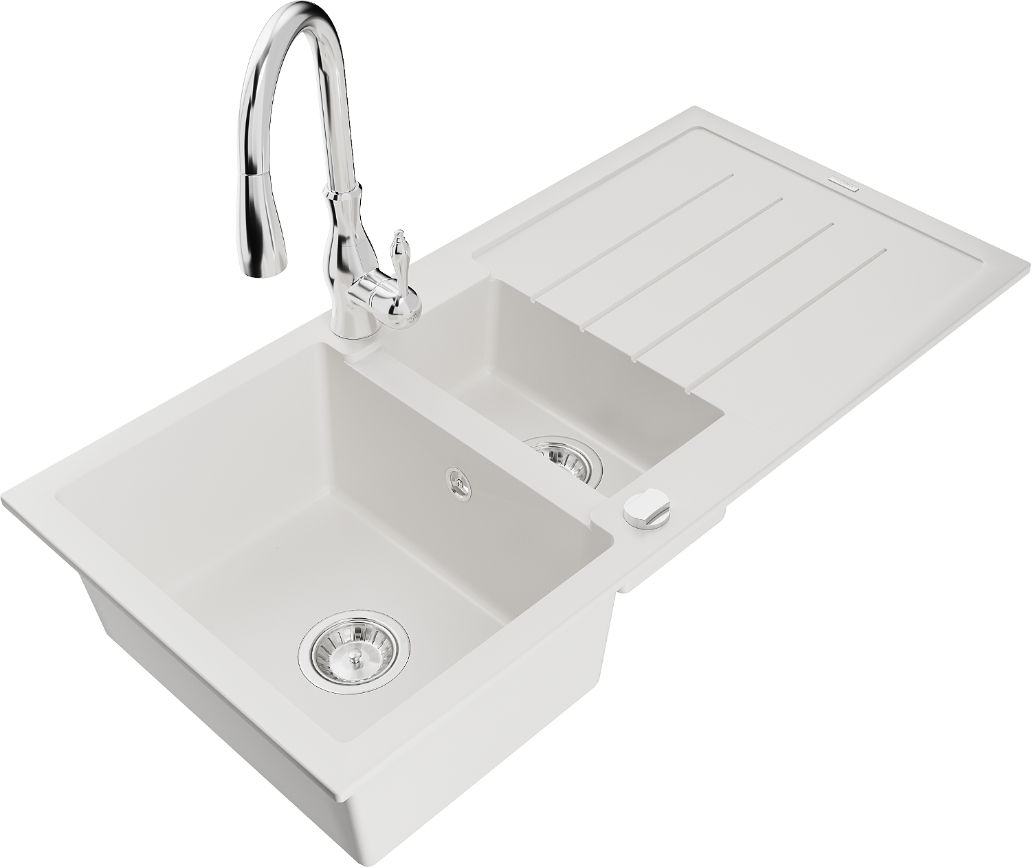 Mexen Andres granito plautuvė 1,5 kamerų su nutekėjimu ir virtuviniu maišytuvu Savita, baltas - 6515-20-672601-00