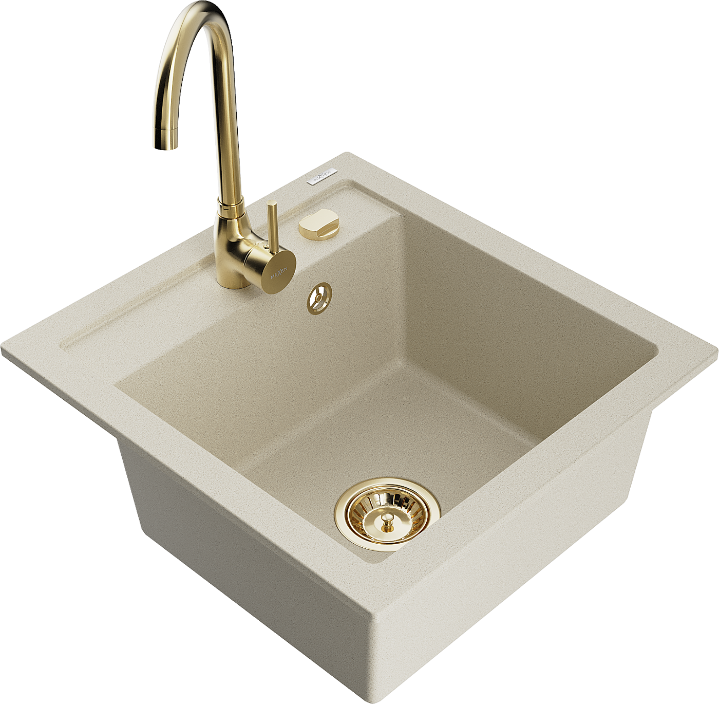 Mexen Vito granitinis virtuvės kriauklė su viena kamera ir Telma virtuviniu maišytuvu, smėlio spalvos - 6503-69-670200-50