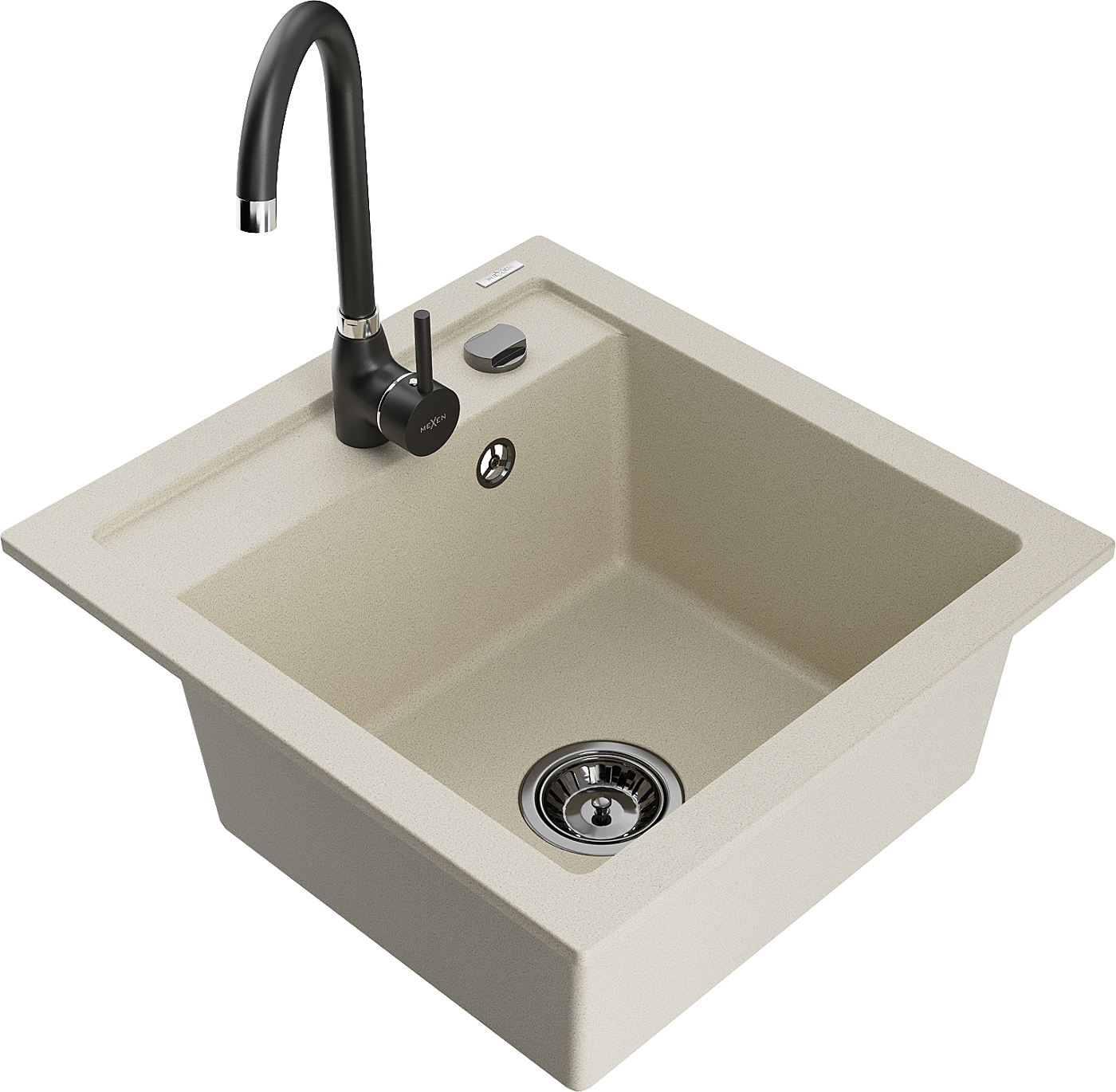 Mexen Vito vienos dalies granito kriauklė su Telma virtuvine maišytuve, smėlio spalvos - 6503-69-670200-70