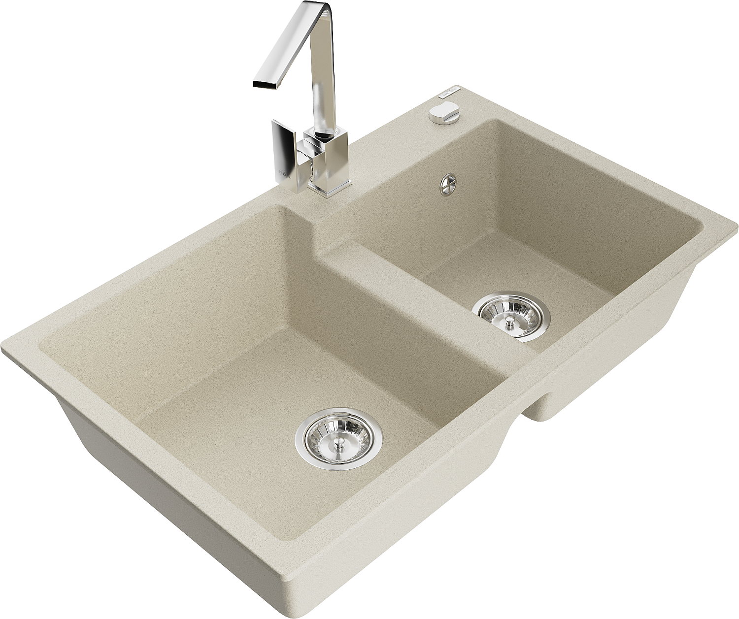 Mexen Tomas dviejų sekcijų granito plautuvė su virtuviniu maišytuvu Rita, smėlio spalvos - 6516-69-670300-00