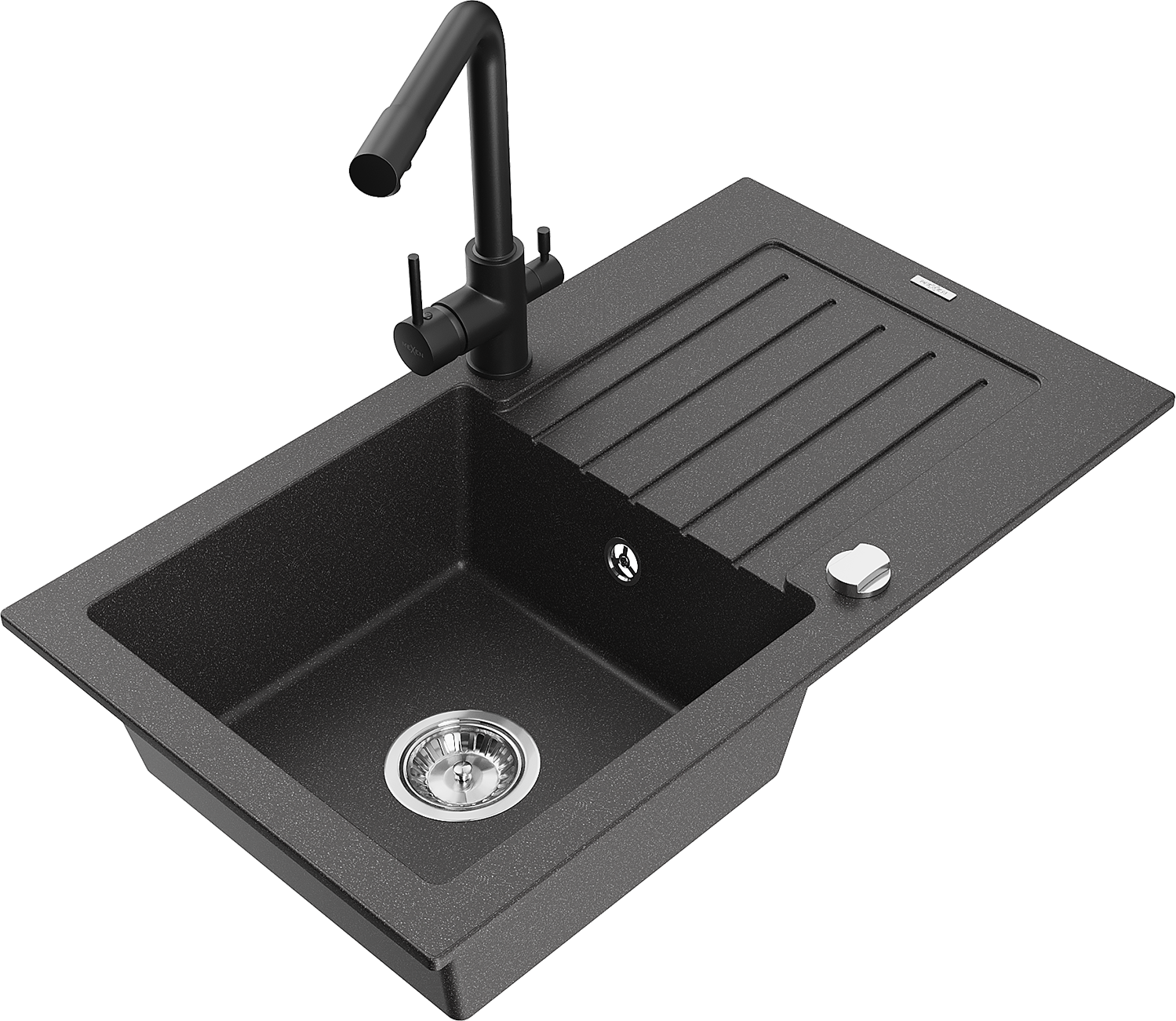 Mexen Pablo granitinė 1-skylių kriauklė su nusausintuvu ir virtuviniu maišytuvu Duero, juodas taškuotas - 6510-76-671600-70