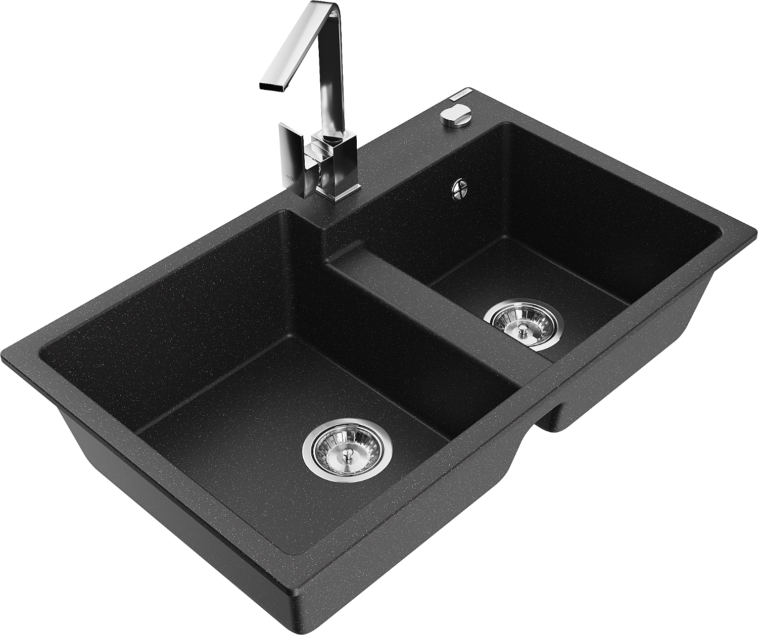 Mexen Tomas granito plautuvė su dviejų skyrių Rita virtuvės maišytuvu, juoda / sidabrinis metalikas - 6516-73-670300-00