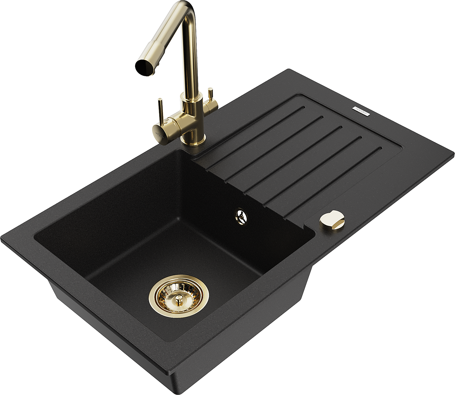 Mexen Pablo granitinis vienos kameros kriauklė su lašėjimo zona ir virtuvės maišytuvas Duero, juoda - 6510-77-671600-50