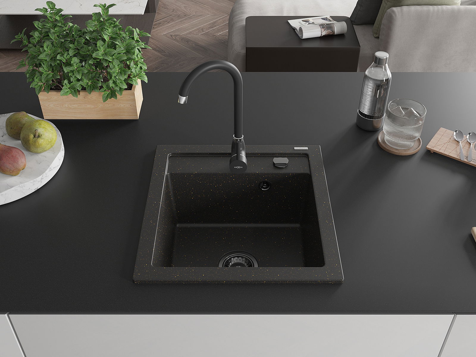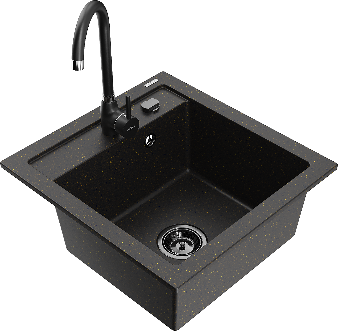 Mexen Vito granito plautuvė 1 skyrelio su Telma virtuvės maišytuvu, juodo/auksinio metalo spalvos - 6503-75-670200-70-B