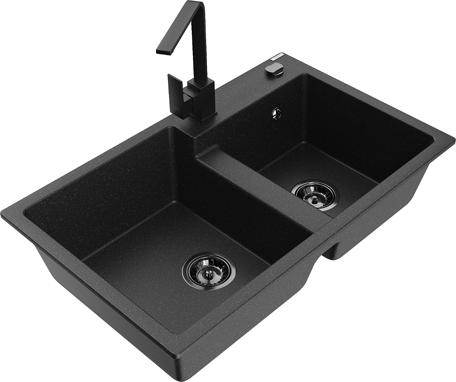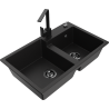 Mexen Tomas 2 skylių granitinis plautuvas su virtuvės maišytuvu Rita, juodas/sidabrinis metalikas - 6516-73-670300-70-B