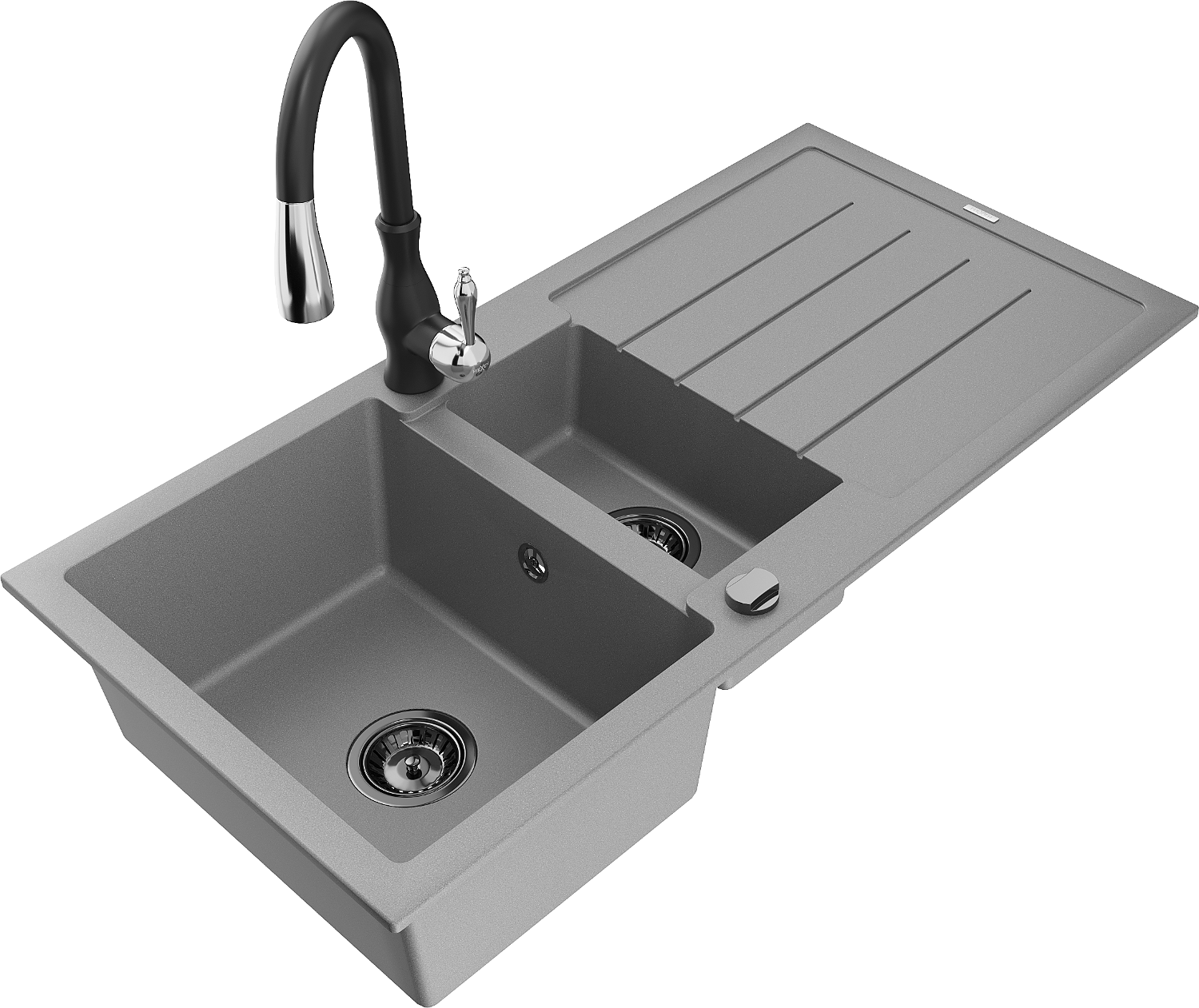 Mexen Andres granitinis plautuvė 1,5 skyrių su nuvarveklau ir virtuviniu maišytuvu Savita, pilkas - 6515-71-672601-70-B