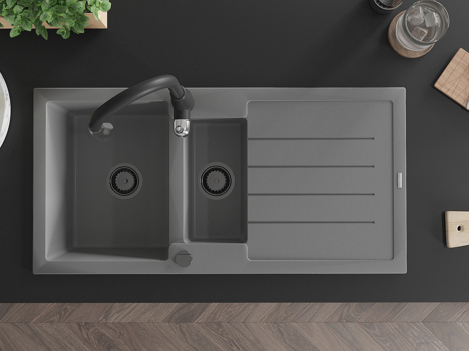 Kriauklės paviršius yra atsparūs dėmėms ir spalvos pasikeitimui, dėl kurio lengva valyti ir ilgą laiką išlaikyti savo spalvą. Estetinis ir praktiškai papildantis kiekvieną virtuvę.
