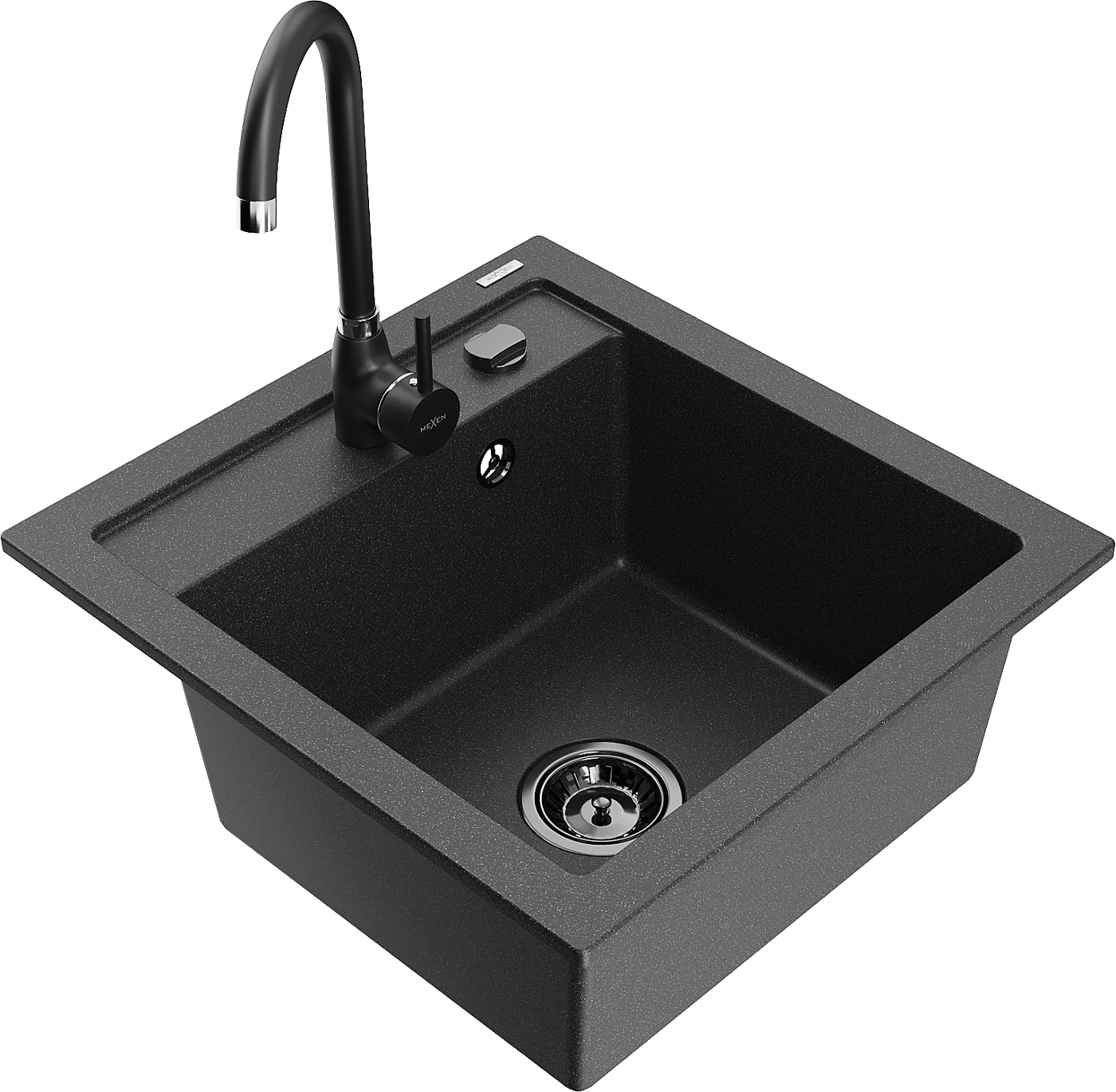 Mexen Vito granitinis vieno dubens virtuvės kriauklė su Telma virtuviniu maišytuvu, juodas dėmėtas - 6503-76-670200-70-B