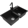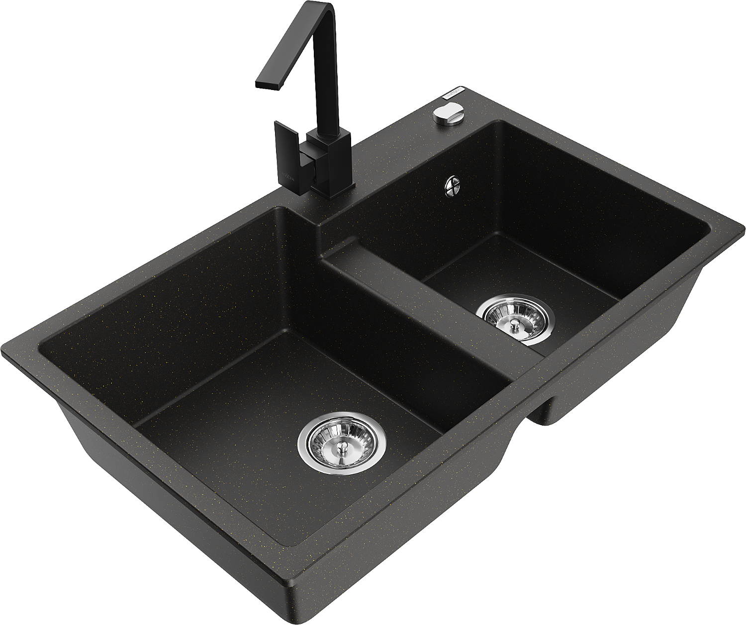 Mexen Tomas granito plautuvė, 2 skyrių su virtuviniu maišytuvu Rita, juodas/auksinis metalikas - 6516-75-670300-70