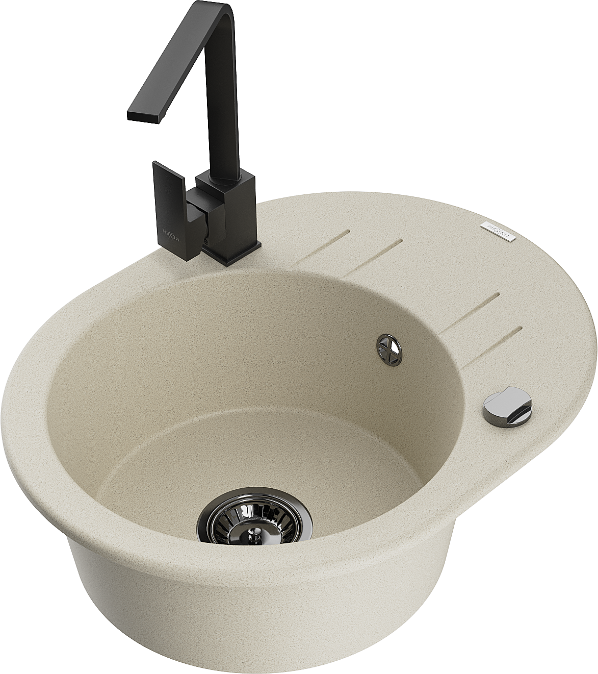 Mexen Kevin vienos kameros granitinė plautuvė su nusausintuvu ir virtuviniu maišytuvu Rita, smėlinė - 6517-69-670300-70