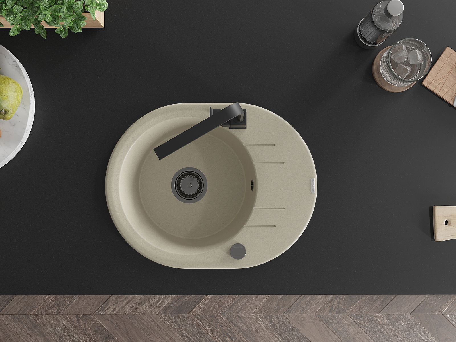 Kriauklės paviršius yra atsparus dėmėms ir spalvos pokyčiams, todėl jį lengva prižiūrėti ir jis išlaiko savo spalvą ilgą laiką. Estetiškai ir praktiškai papildo kiekvieną virtuvę.
