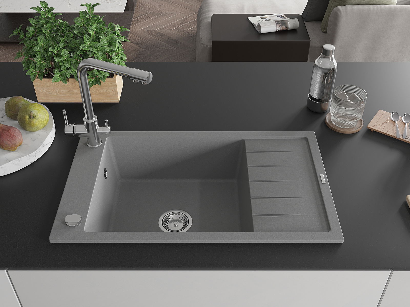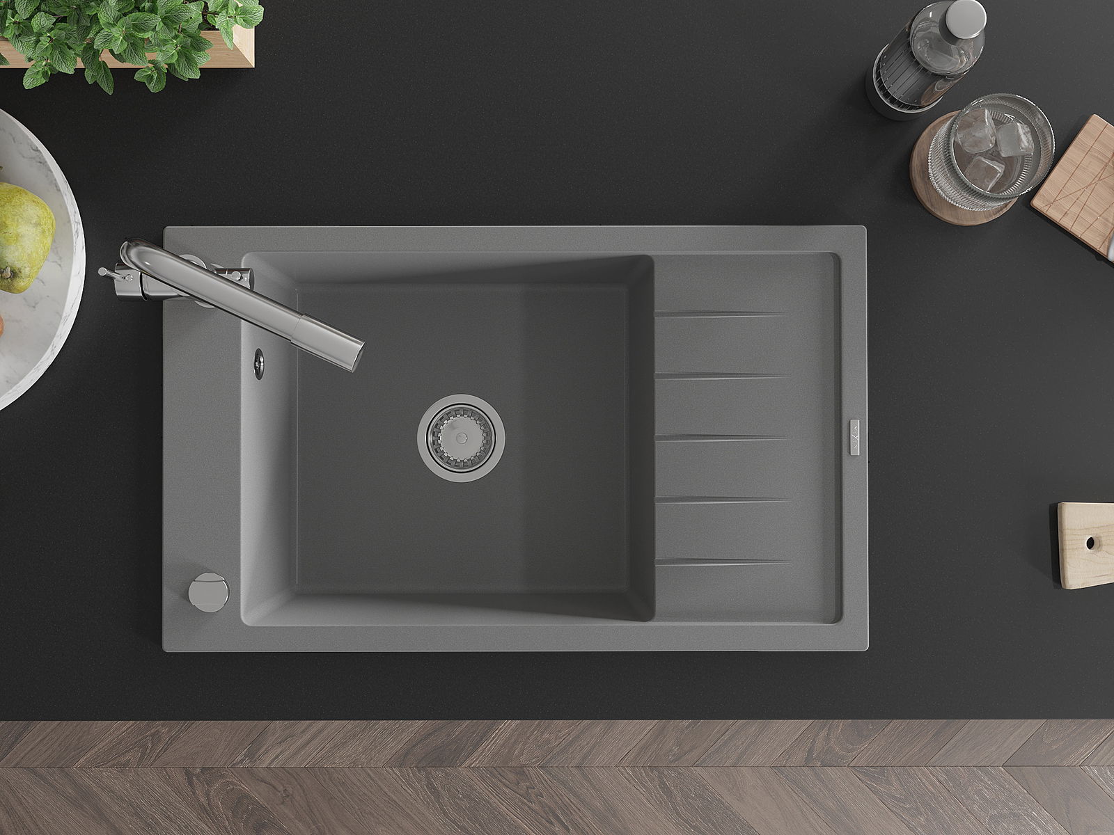 Mexen Elias granitinė vienos kameros kriauklė su nusausintuvu ir virtuviniu maišytuvu Duero, pilka - 6511-71-671600-00