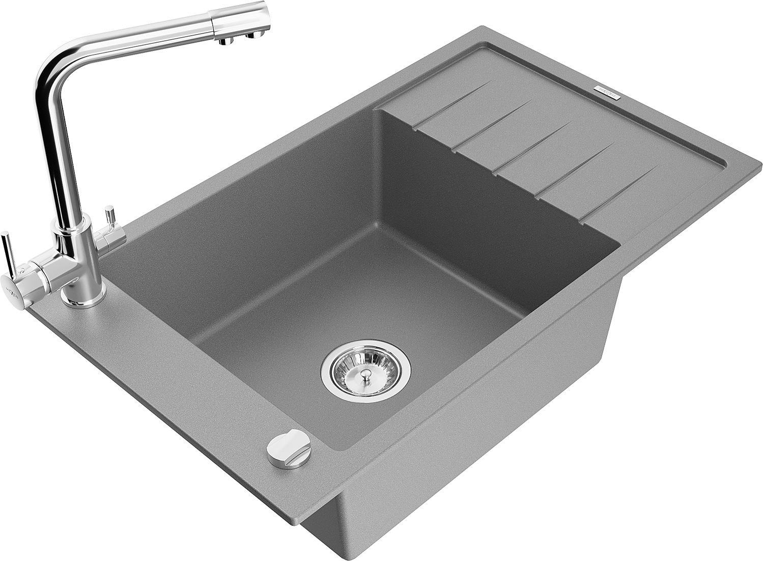 Mexen Elias granitinis virtuvinis plautuvė su viena kamera ir nutekamu vandeniu bei virtuviniu maišytuvu Duero, pilkas - 6511-7?