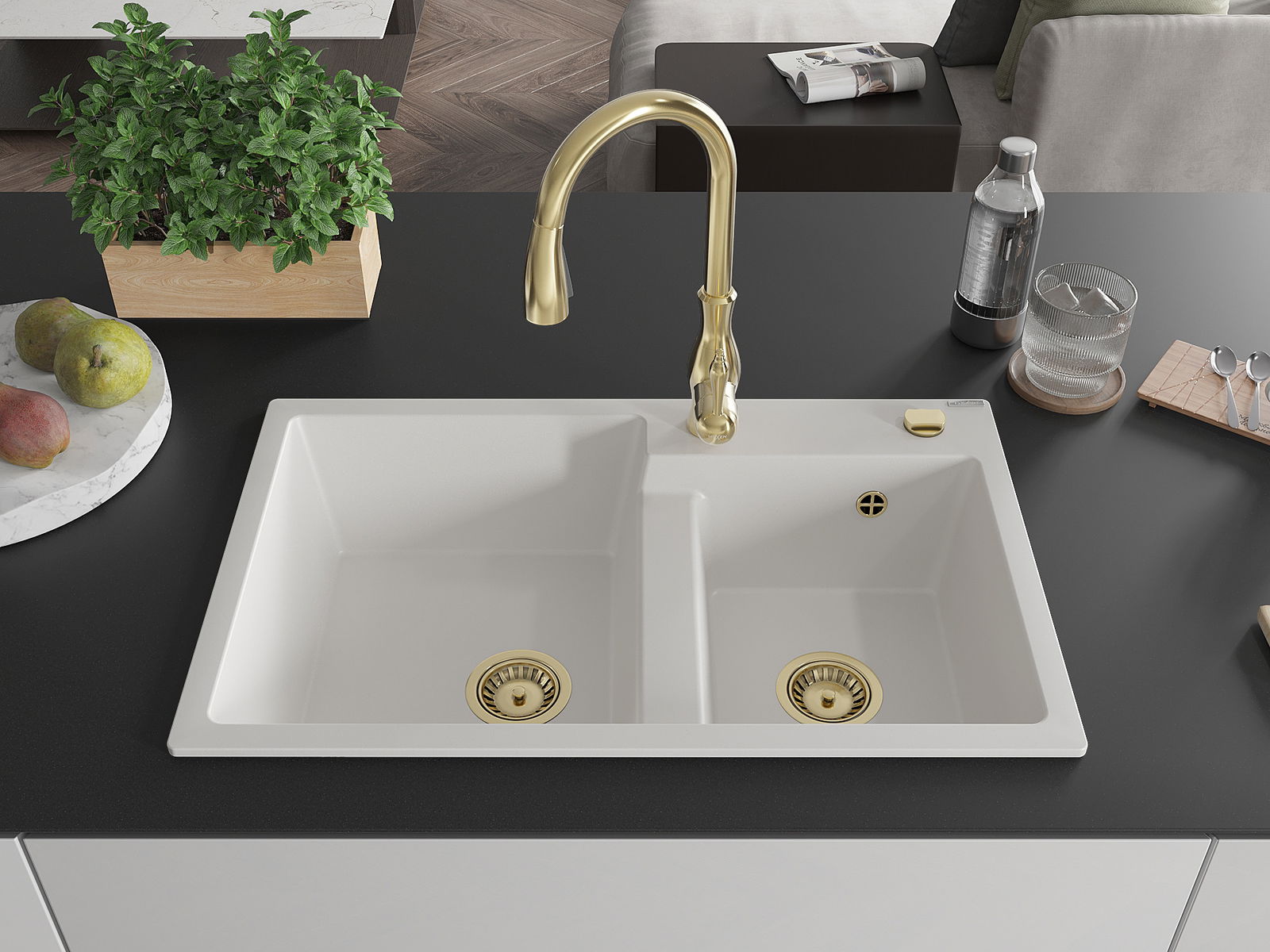 Kriauklės paviršius yra atsparūs dėmėms ir spalvos pasikeitimui, dėl kurio lengva valyti ir ilgą laiką išlaikyti savo spalvą. Estetinis ir praktiškai papildantis kiekvieną virtuvę.