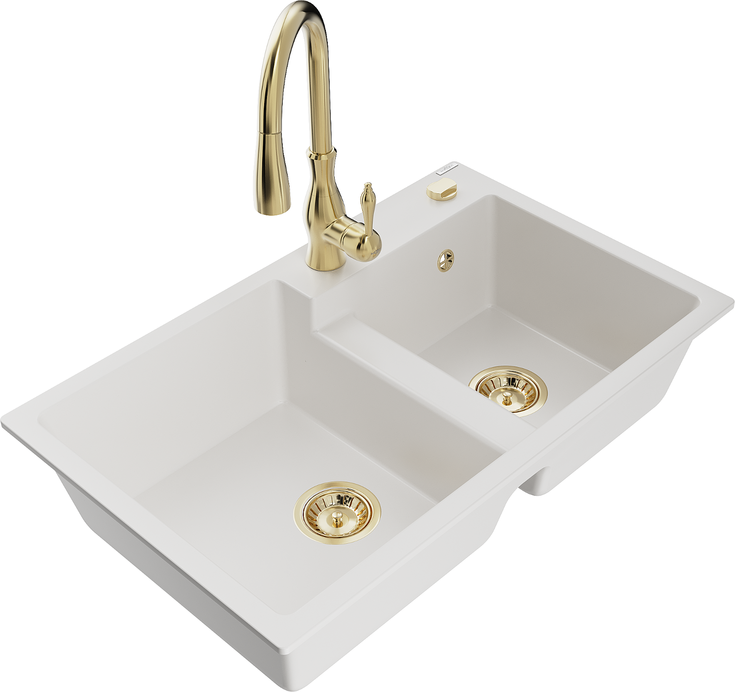 Mexen Tomas granitinis plautuvės 2 skylių su virtuviniu maišytuvu Savita, baltas - 6516-20-672601-50