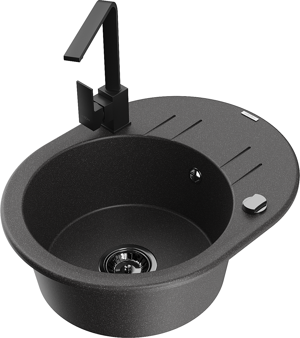 Mexen Kevin granitinė plautuvė 1 skyrius su nusausa ir virtuviniu maišytuvu Rita, juoda taškuota - 6517-76-670300-70-B